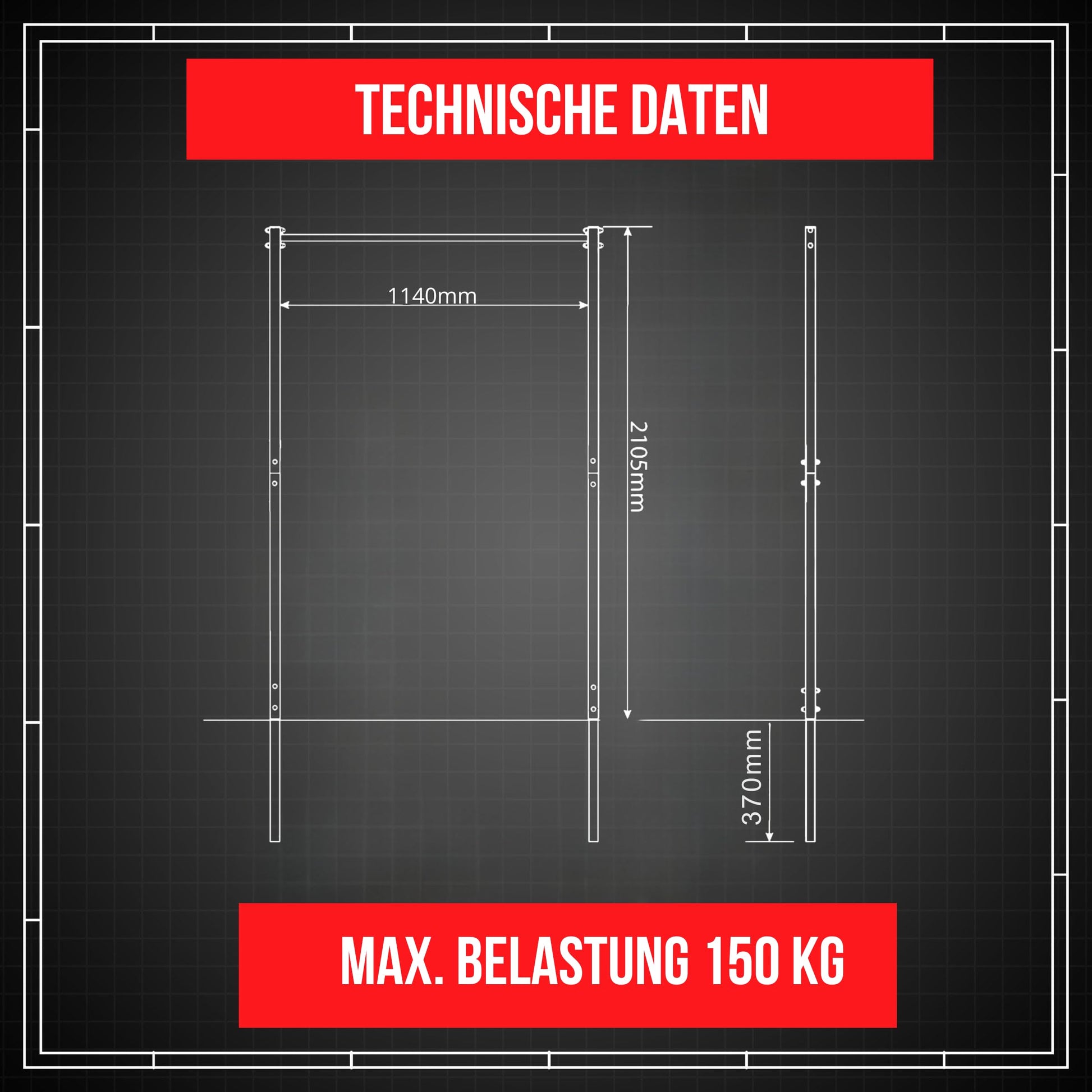 "OPTIMAL HEIGHT: The distance of the pull-up bar from the ground is 81 inches & it is 45 inches wide. Therefore, the chin-up bar is suitable for every body size & leaves no wishes unfulfilled in designing your training.",