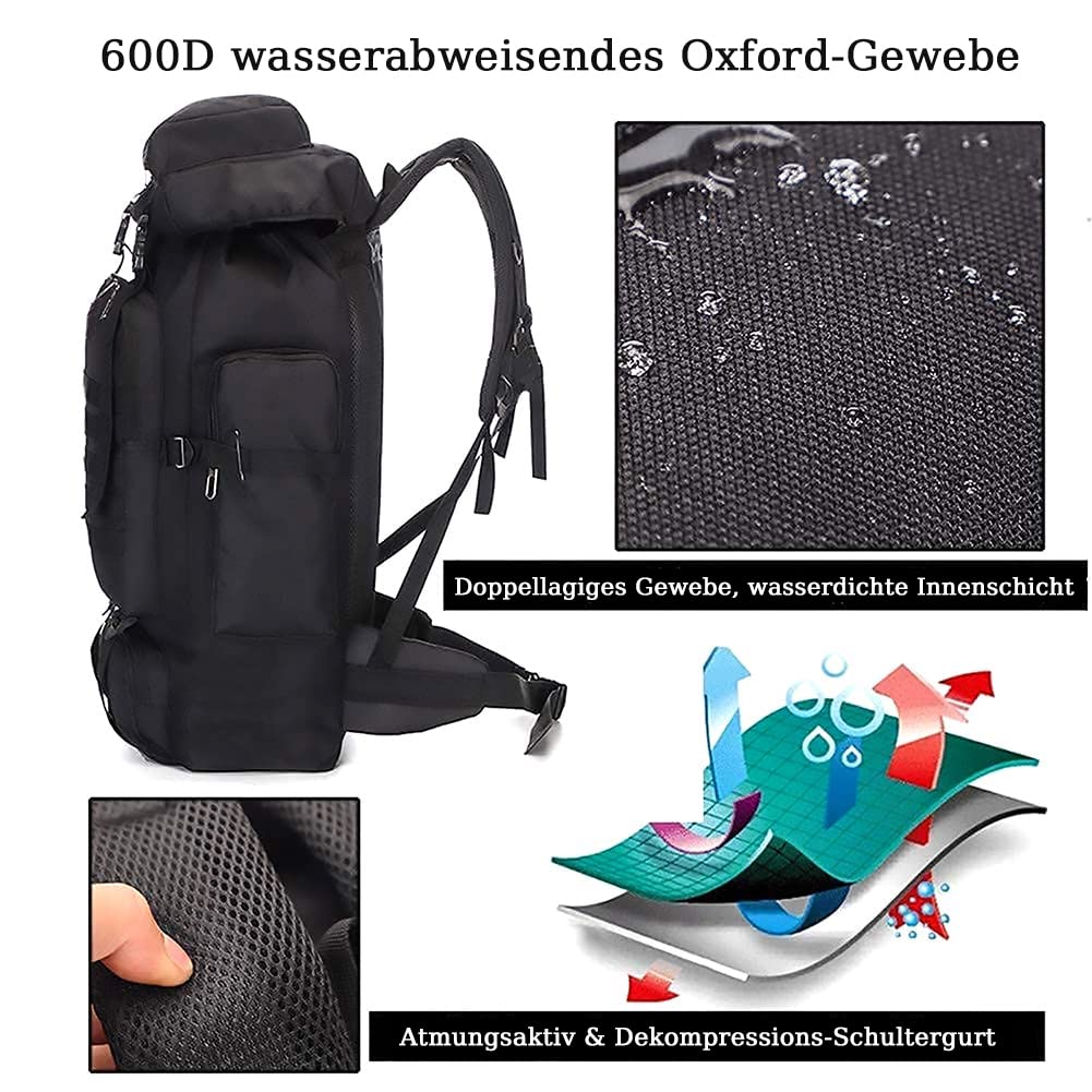 ["Large hiking backpacks 80 liters】The 80L camping backpack with large capacity, can hold all your daily necessities such as tents, moisture-proof pads and sleeping bags, hiking poles, clothing, and mini stove. In the compartments on the top, bottom, and sides, you can store smaller items such as umbrellas, cups, ropes, food, etc. Very suitable for outdoor sports.","【Outdoor waterproof camping backpack】The hiking backpack exterior is made of high-density waterproof material, the interior lining is foil, with waterproof, wear-resistant, and tear-resistant functions. It uses sturdy zippers and sophisticated stitching technology, stronger and more durable than traditional quilted backpacks.","【Ergonomic travel backpack】The back of the backpack has a comfortable carrying system that can maximize air permeability, comfort, and toughness. The wide and adjustable straps make it easier on the shoulders. The breathable mesh padding ensures a comfortable and dry hike.","【Multifunctional Military Tactical Backpack】Military backpack measures 34* 17* 72 cm and weighs 1.27 kg; You can use it as hunting backpacks, hiking backpacks, camping backpacks, tactical backpacks, travel backpacks, survival bags, bug out backpack, combat backpack, fishing backpack, bushcraft backpack, mountaineering backpack, etc.","【Versatile and perfect gift】The sports backpack is suitable for all outdoor sports and daily use. Weekend trips, trekking, camping, climbing, mountaineering, traveling, fishing, hiking, traveling, photography, motorcycling, etc. It is also the perfect gift if your son is in the military."]