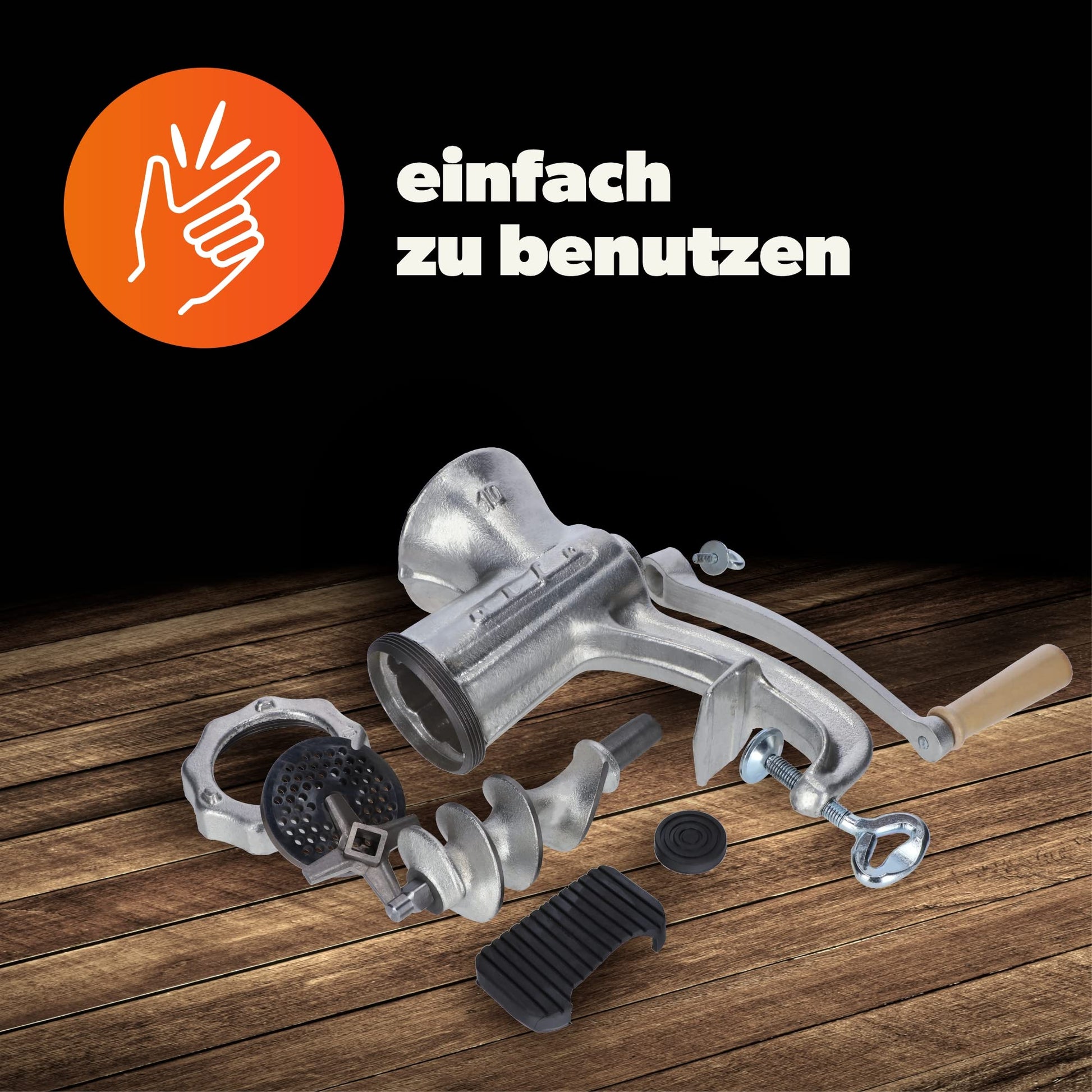 KADAX cast iron meat grinder, 6 sizes, manual meat machine with table clamp, vintage meat grinder, galvanized grinding machine, meat grinder (size 10)