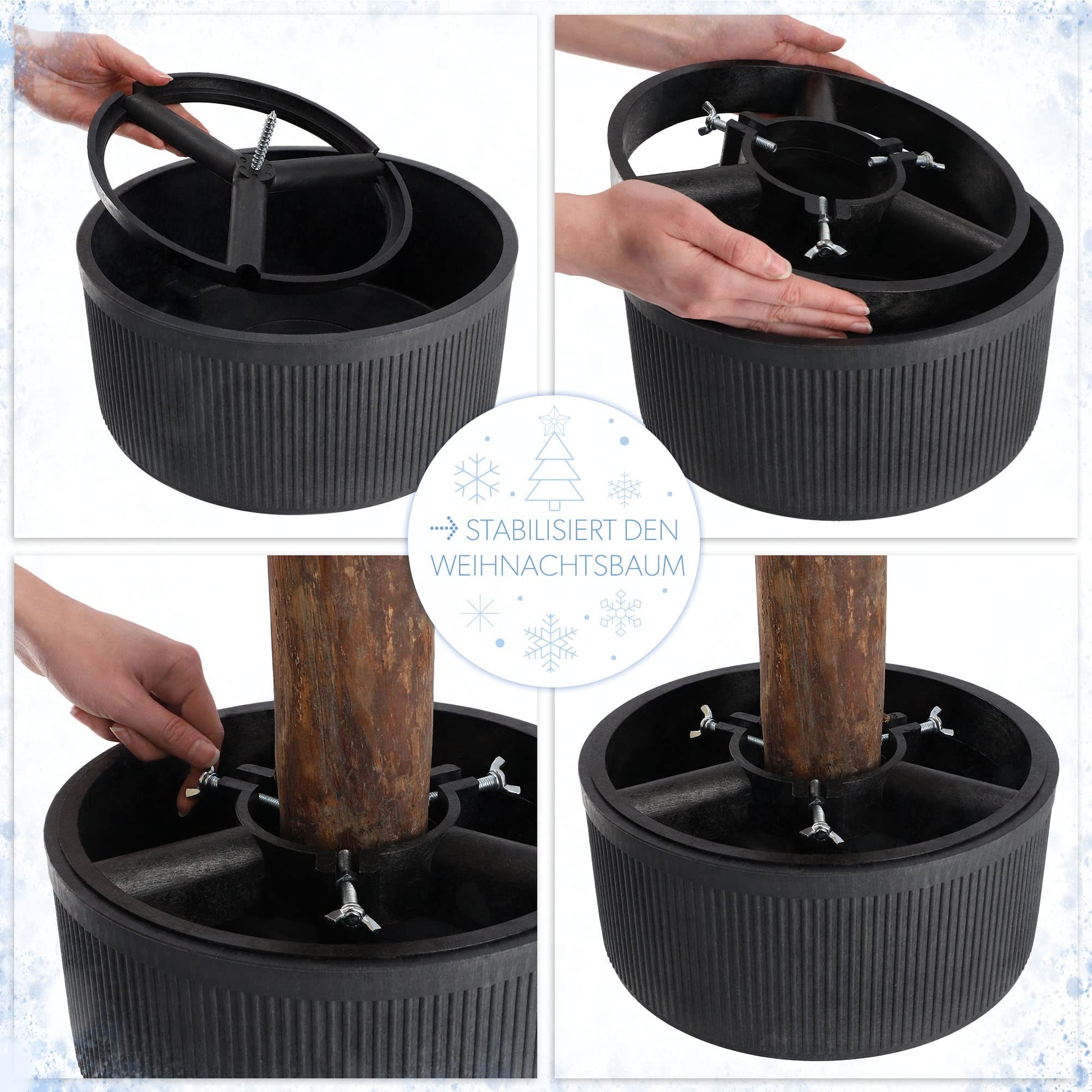 "SUITABLE FOR REAL FIR TREES - the plastic Christmas tree stand has special openings. It works great with real fir trees."]