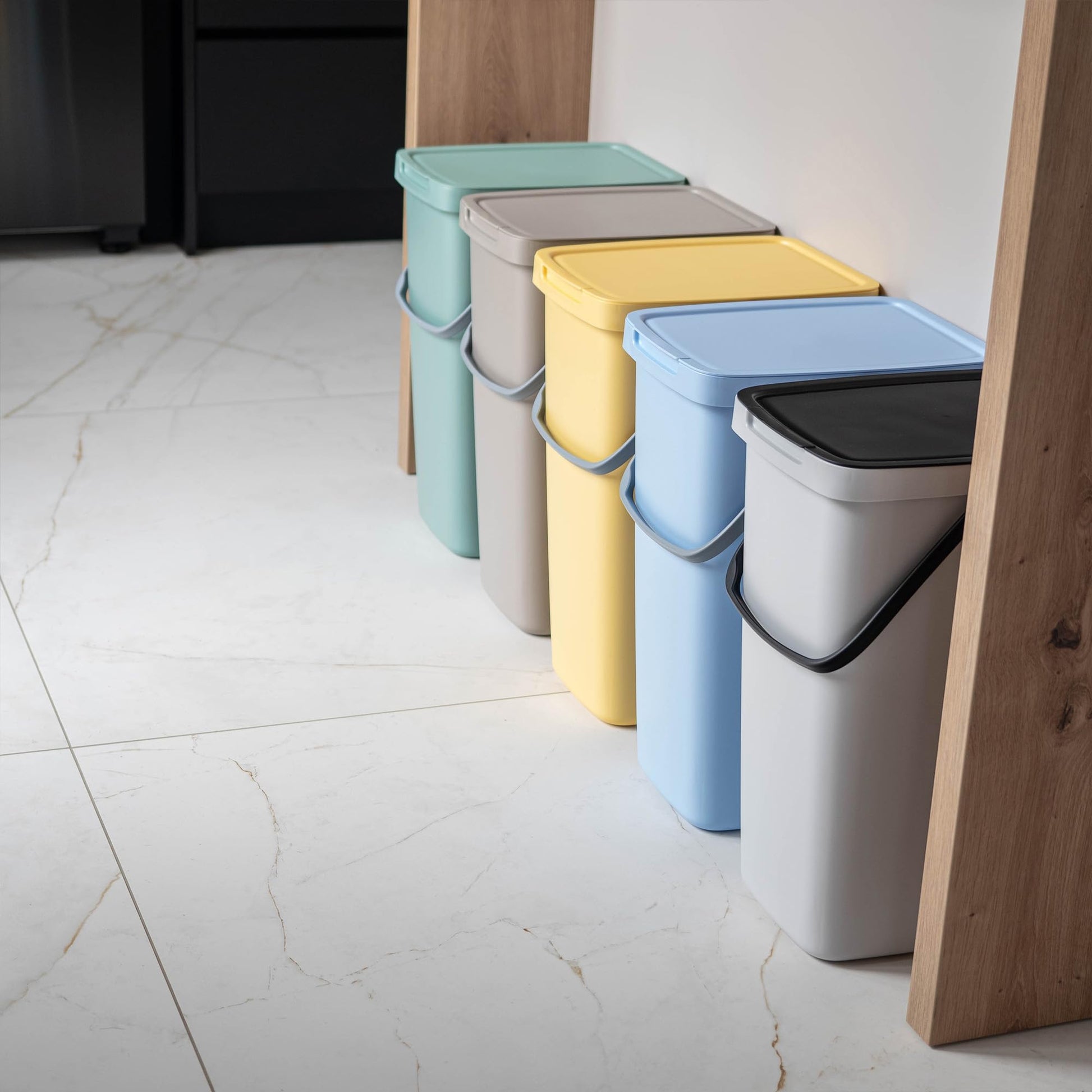 ["Different size options: The Salans waste bin is available in 4 sizes, making it easy to find the right option for your needs. It is available in sizes of 25, 20, 12, and 6 liters.", "Subtle design: The modern shape of the Kadax product is emphasized by an original color palette. Each model is available in Light Brown, Blue, Ash, Light Green, and Light Yellow colors.", "Extremely practical: An essential element of the waste bin is the frame located directly under the hinged lid. Its main function is to keep the trash bag in place so it doesn't slip into the bin.", "Resilient: Our waste collector is made of durable plastic. It is resistant to damage and contact with water.", "Hygienic: No matter what type of waste you collect in the Salans waste bin, you will have no trouble cleaning it. The inside of the container is completely smooth."]