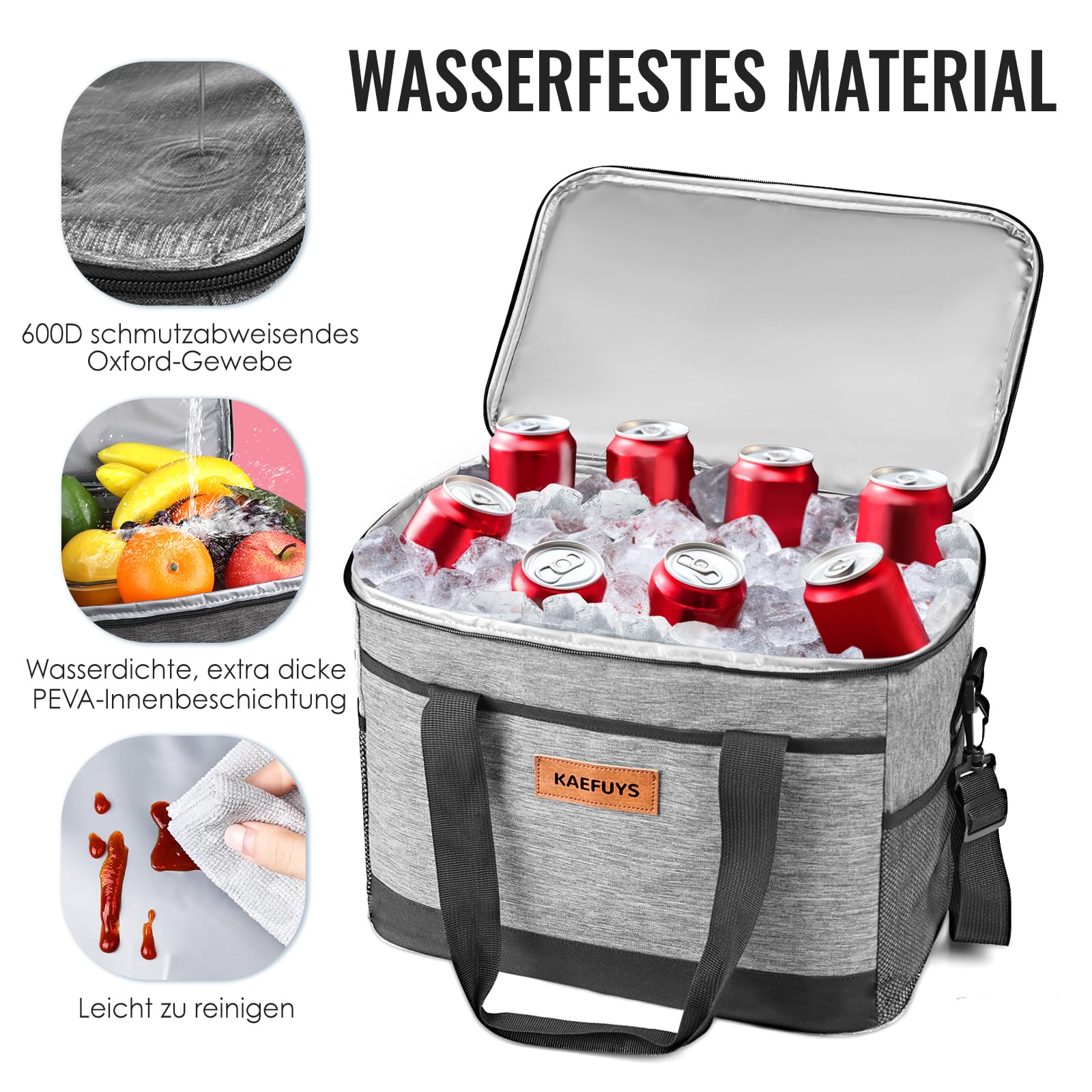 KAEFUYS Cooler Bag Foldable 33L+12h Cooling Large Insulated Lunch Box Shopping Basket Waterproof Stain-Resistant for Family Office Car Camping Picnic BBQ Travel Shopping