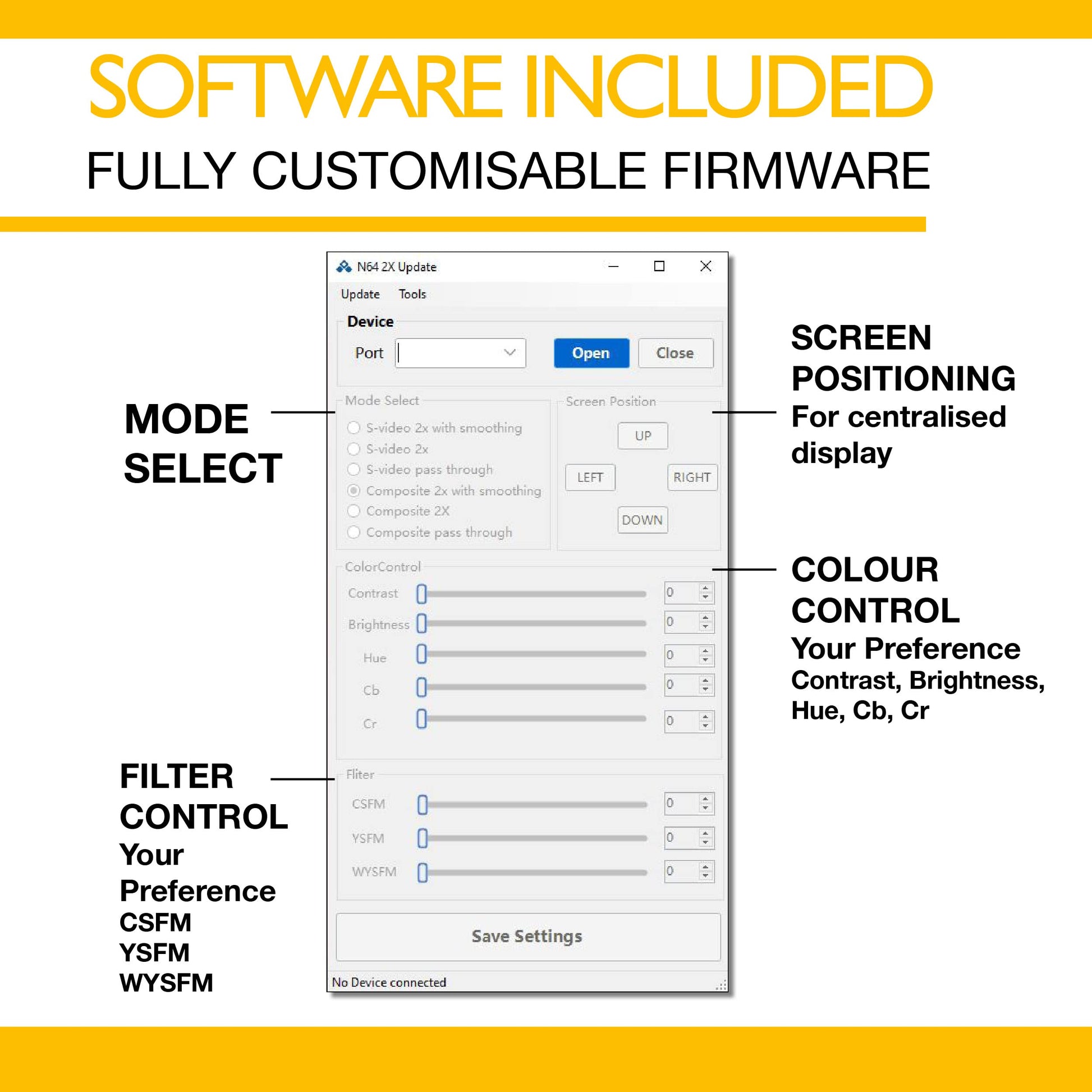 Softening options - The analog Nintendo N64 HDMI adapter from Kaico for Nintendo consoles has a built-in softener to achieve a better image.