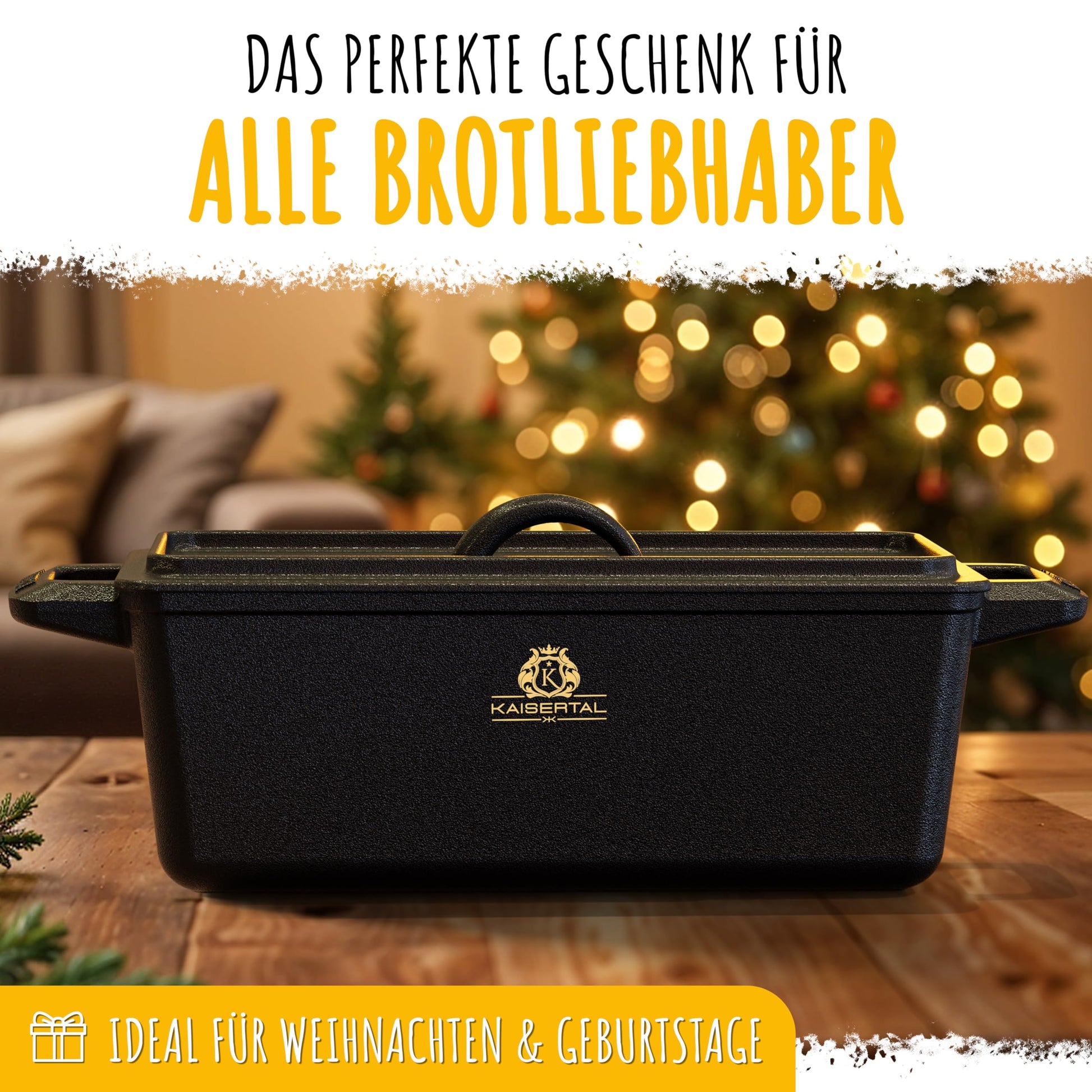KAISERTAL Cast Iron Bread Baking Pan with Lid 28cm - Sturdy cast iron pot for baking bread - Ideal as bread mold, bread pot, loaf pan and bread baking molds - including baking accessories