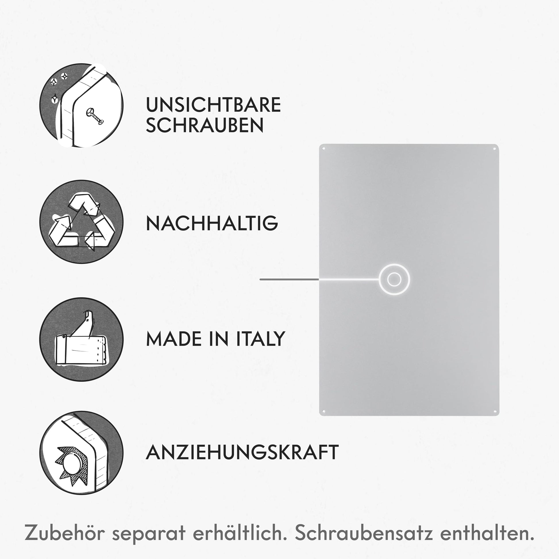 "Easy to hang on the wall with the included set (screws, anchors, and screw covers) or with mounting adhesive. Thanks to the recessed holes, the screws \"disappear\" and the surface of the chalkboard is perfectly smooth. You can hang it horizontally or vertically!",
