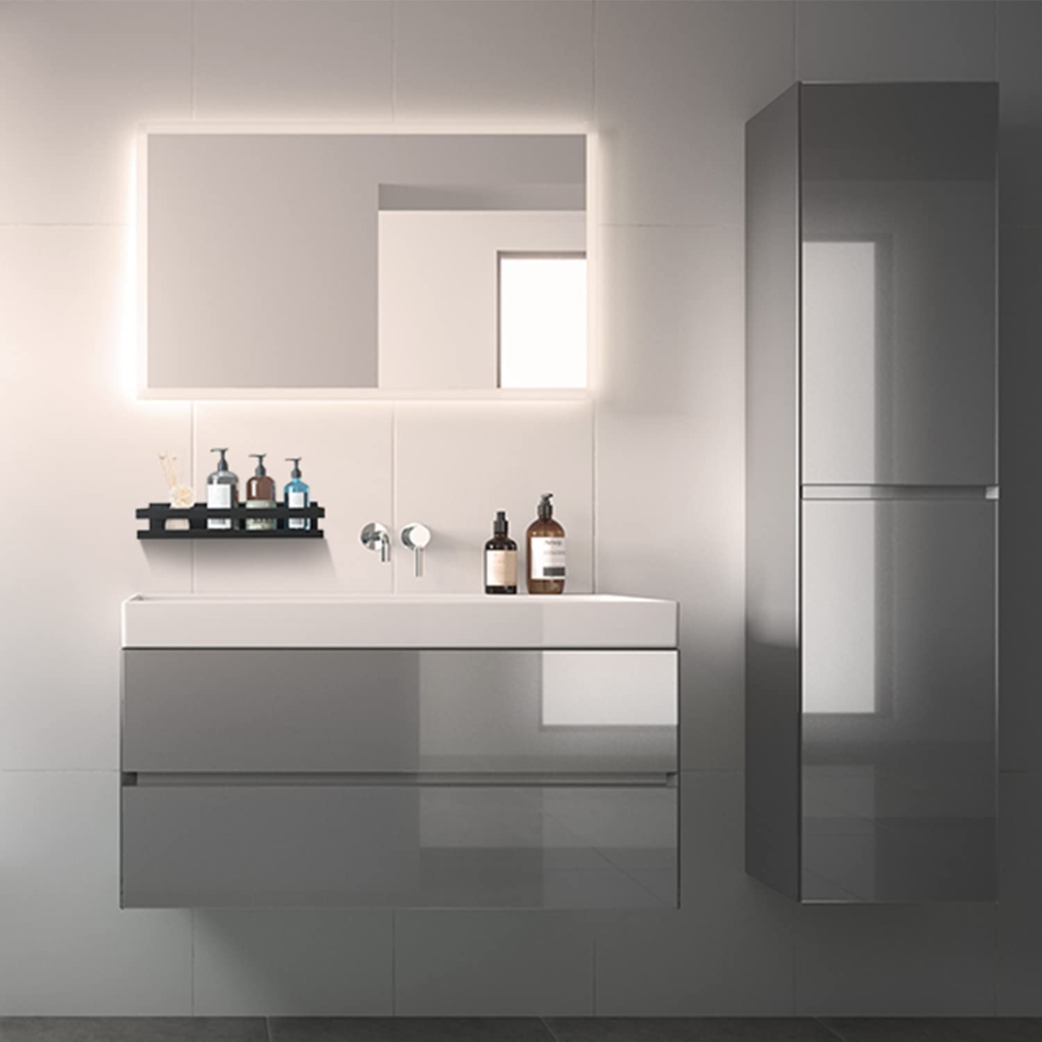 "✅【TWO INSTALLATION METHODS FOR SHOWER SHELF】1. First, install the shower shelf for hanging with adhesive, quickly and easily, without drilling, without damaging the wall. Additionally, use auxiliary stickers to fix it. Please wait until the adhesive is dry before using the bathroom wall shelf (48-72 hours). 2. For uneven walls (e.g. paint, textured wallpaper, etc.) ❤️ it is recommended to drill for installation, which is more stable, and the drilling accessories are included. This allows you to easily attach the shower shelves to all wall conditions."