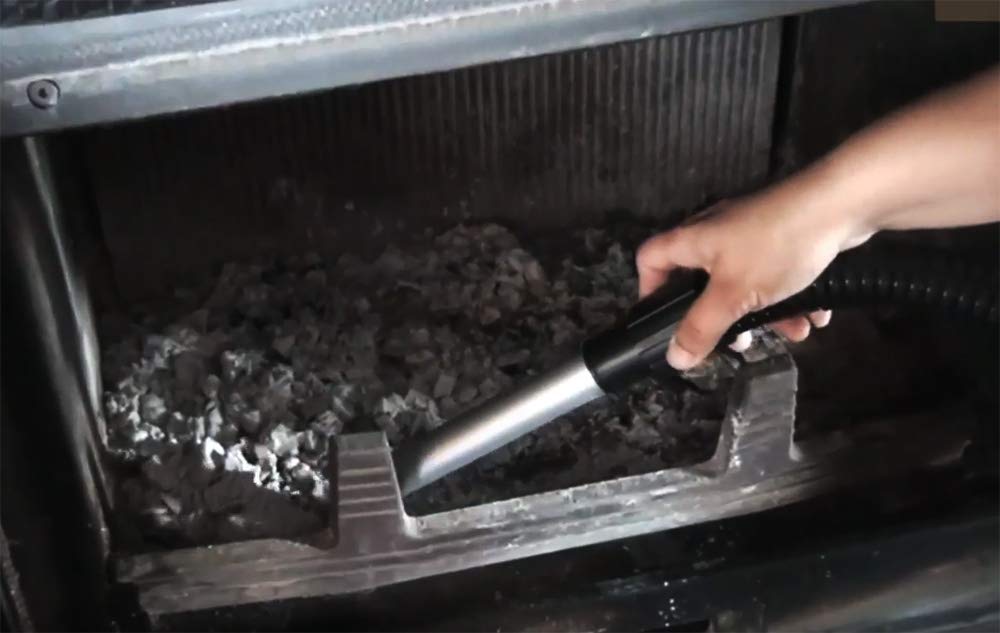 "【Easy installation】The compact system allows for quick assembly, all parts are connected or secured by clamps. The ash vacuum cleaner is light and with its dark color and red cover, a small design object."]
