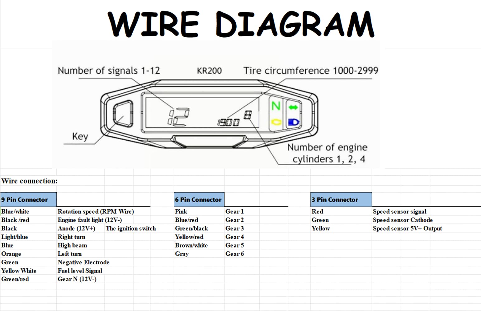 ["MULTIFUNCTION: Functions include speedometer, odometer, tachometer, fuel gauge. NOTE: Connect the black positive and green negative into the 9 holes first, then connect other wires.","LCD Display: The clear display allows for a wider viewing angle, alleviating eye fatigue and enjoying the journey. Mileage is clearly displayed whether driving at night or during the day.","EASY TO INSTALL: Wiring instructions can be found in the manual or product description. For installation issues, please contact our customer service team at any time.","WATERPROOF AND DURABLE: The appearance is exquisite and soft, the materials are safe, environmentally friendly, durable, and waterproof.","Wide Application: Universal for most motorcycle models."]