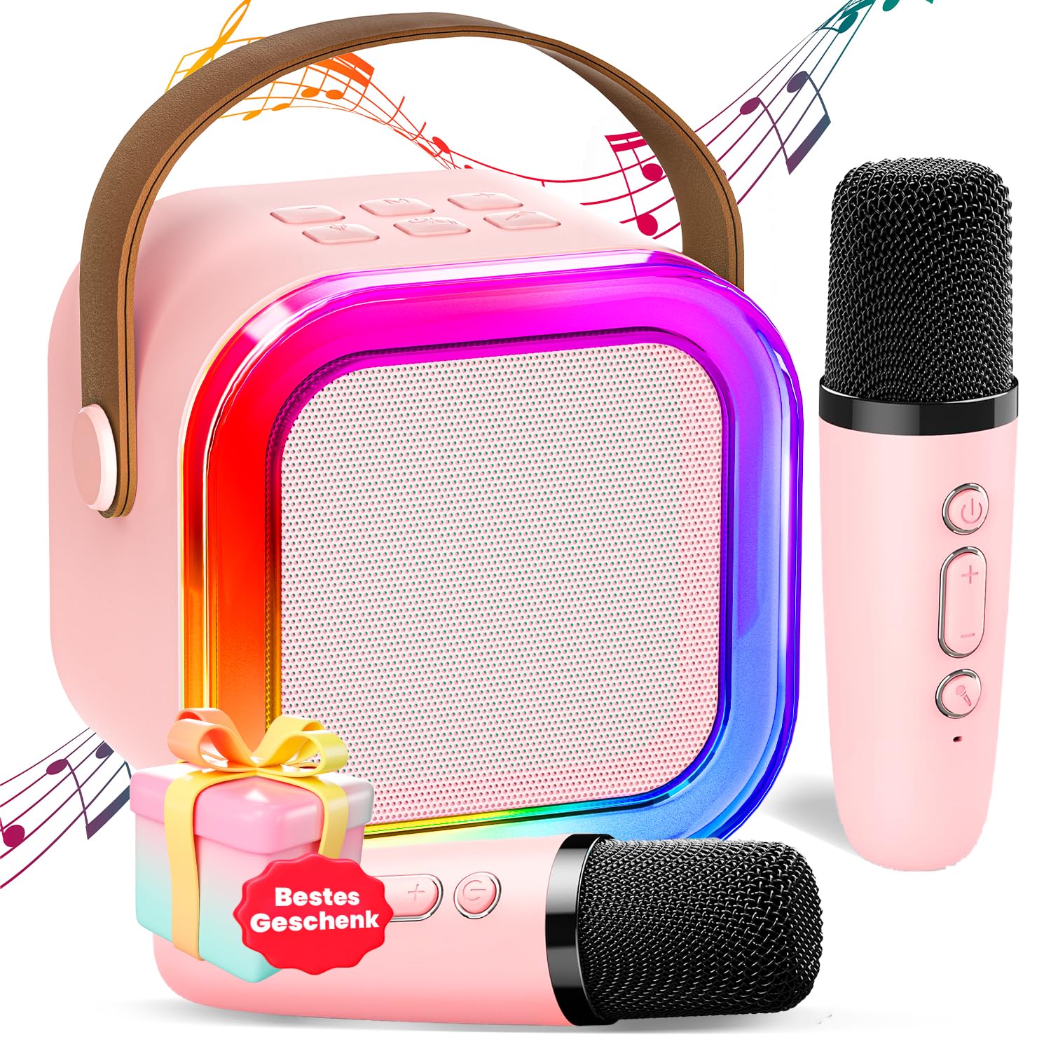 ["🎀Die Top-Karaoke-Maschine 2025: Functions as a karaoke microphone, Bluetooth speaker, voice changer, and ambient light, providing an unforgettable experience. Durable and user-friendly, it offers crystal clear sound thanks to advanced noise suppression. LED rainbow lights sync with your music to liven up any party. Experience unparalleled entertainment with this innovative karaoke machine!","🏆What else is new? Dive into true wireless freedom, enhanced by superior size and material design. The improved kids karaoke machine goes beyond a standard microphone, offering a wealth of features and significantly improved sound quality. With intuitive, user-friendly controls, it's suitable for artists of all ages, making it the perfect choice for your next sing-along session.","🎶Spice up your day with Song ab: Connect seamlessly to your phone or tablet via Bluetooth and unleash your inner DJ. Access a world of music through Spotify, YouTube, TikTok, or any music app and turn any gathering into a musical adventure. Its portable and child-friendly design makes it perfect for smaller hands, allowing kids to play their favorite songs anytime, anywhere.","🦄Cool Stressverzerrerspielzeug: Transform voices into different characters like monsters, babies, men, and women, allowing kids to dive into a world of imaginative play. Whether alone or with friends, it promises hours of laughter and joy. Perfect for family gatherings. Watch children of all ages – even adults – delight in the hilarity as grandpa sings like a baby and grandma sings songs like a monster.","🎁Ultimative musikalische Geschenke: This mini karaoke machine box is more than just a toy; it is a fantastic tool to foster children's love for music and singing. It stimulates creativity, boosts confidence, and provides endless entertainment. It's the perfect gift for girls and boys on occasions such as back-to-school, birthdays, Thanksgiving, Halloween, and Christmas.","Note: If the indicator light on the mini karaoke machine does not light up when charging, this is because the battery has a protective mechanism. Please charge the device for about 20 minutes, then unplug and recharge it. This should make the charging indicator appear. Please use only a DC 5V power adapter and avoid fast chargers."]