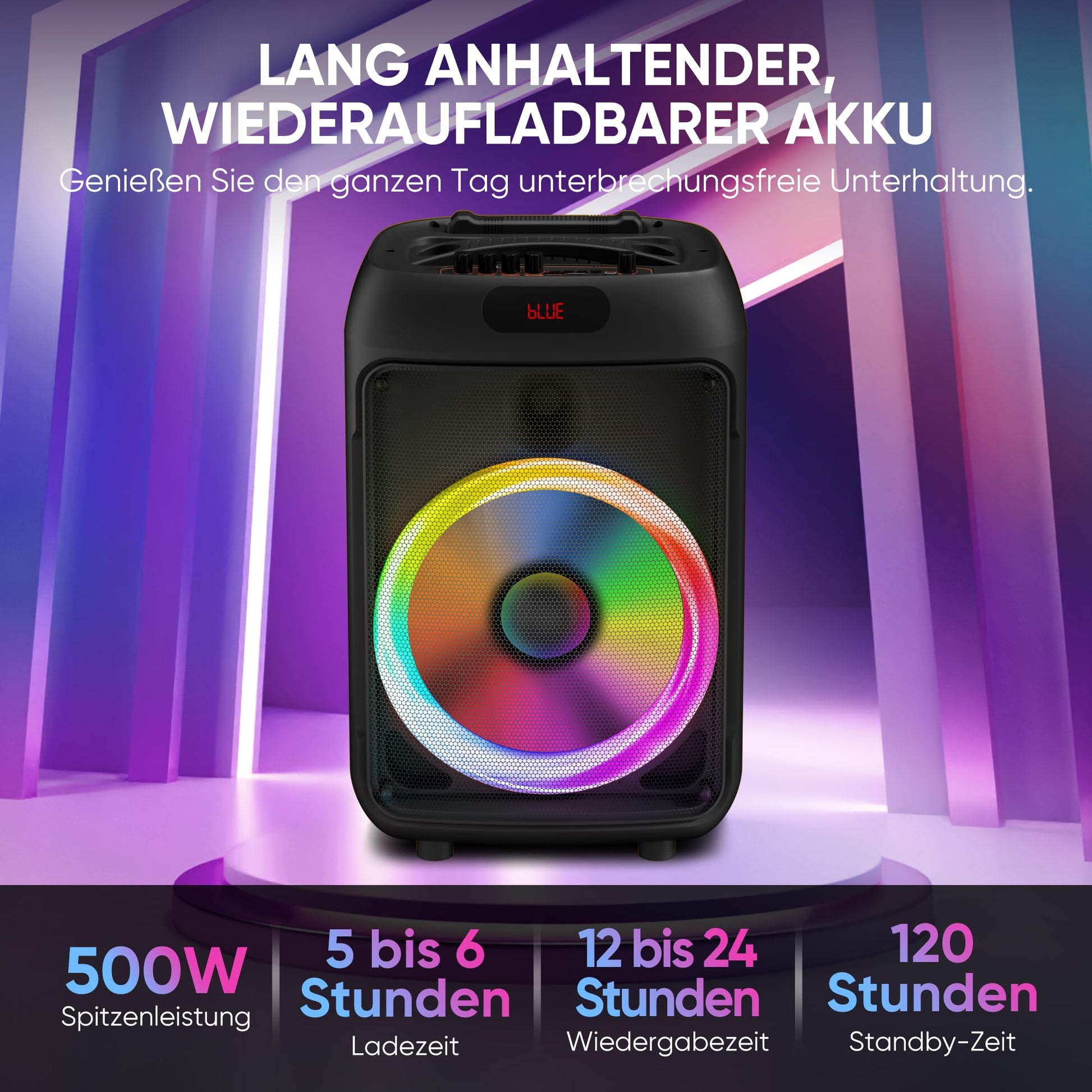 ["Multifunctional karaoke machine: The built-in latest Bluetooth 5.3 chip ensures instant pairing and transmission over long distances. Supports micro TF card, USB, and AUX connections. Compatible with Android phones, iPhone, iPad, TVs, and computers, perfect for family gatherings and outdoor parties.","Stereo sound: The speaker of the portable karaoke machine is equipped with a high-performance audio driver and an advanced digital signal processor, providing clearer sound and stronger bass, the volume is more moderate and eliminates any noise.","Multi-colored LED lights: The karaoke machine set comes with adjustable colorful RGB lights and multiple light effects that can create a pleasant and romantic atmosphere for you. You can immerse yourself in a pleasant atmosphere and enjoy a joyful party.","Bluetooth 5.3: This portable karaoke machine is equipped with the latest DSP chip to optimize sound quality and provide a clearer and more balanced sound effect. It supports up to 12 hours of continuous playback, allowing you to enjoy your musical journey anytime, anywhere.","TWS mode: You can connect two identical stereo systems via Bluetooth 5.3. The powerful stereo sound is synchronized and you are surrounded by 2 channels. You can enjoy your music with optimal presence, power, and volume."]