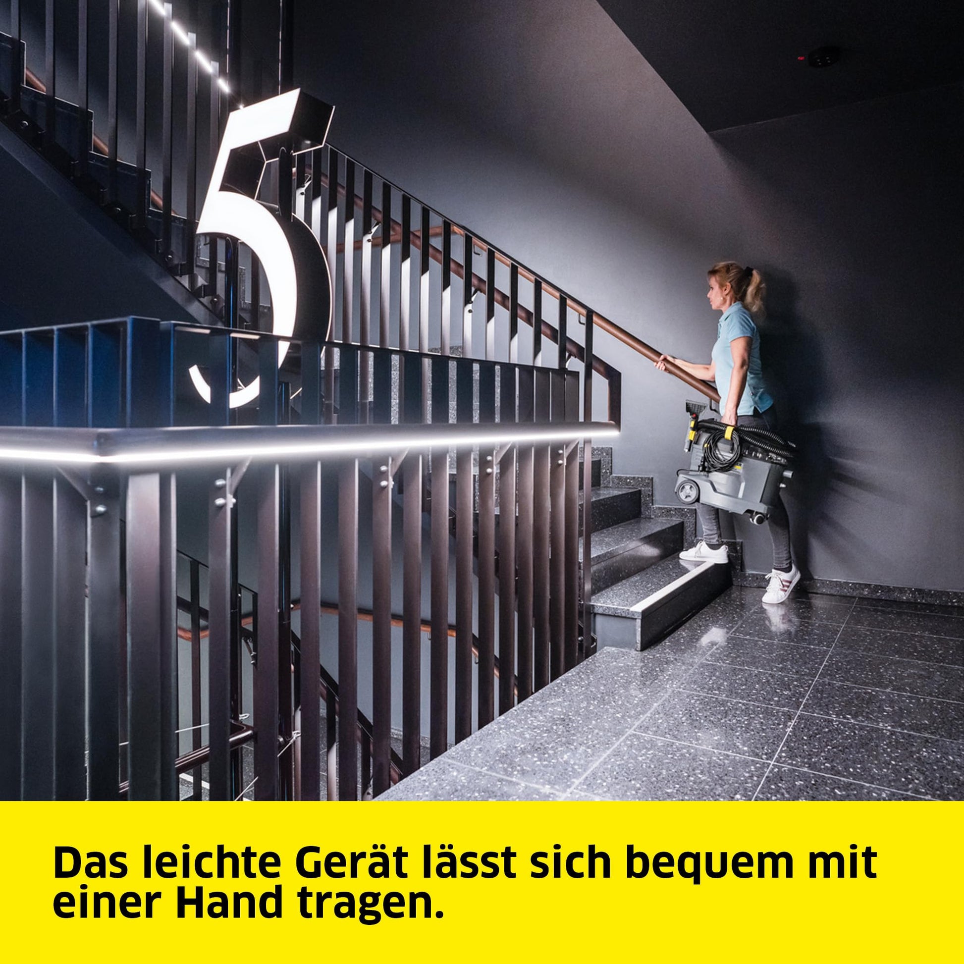 ["Kärcher carpet cleaner Puzzi 8/1, powerful, for upholstery cleaning, stain removal on textile surfaces, incl. ergonomic, short upholstery nozzle","Excellent cleaning performance and fast drying thanks to very good suction power","Ergonomic and extra short upholstery nozzle, which can be operated with just one finger","Areas of application: upholstery, upholstered furniture, stain treatment, textile surfaces including in vehicles, also in hygienic and sensitive areas","Scope of delivery: Puzzi 8/1, 2-in-1 tank, power cable, spray/suction hose, upholstery nozzle"]