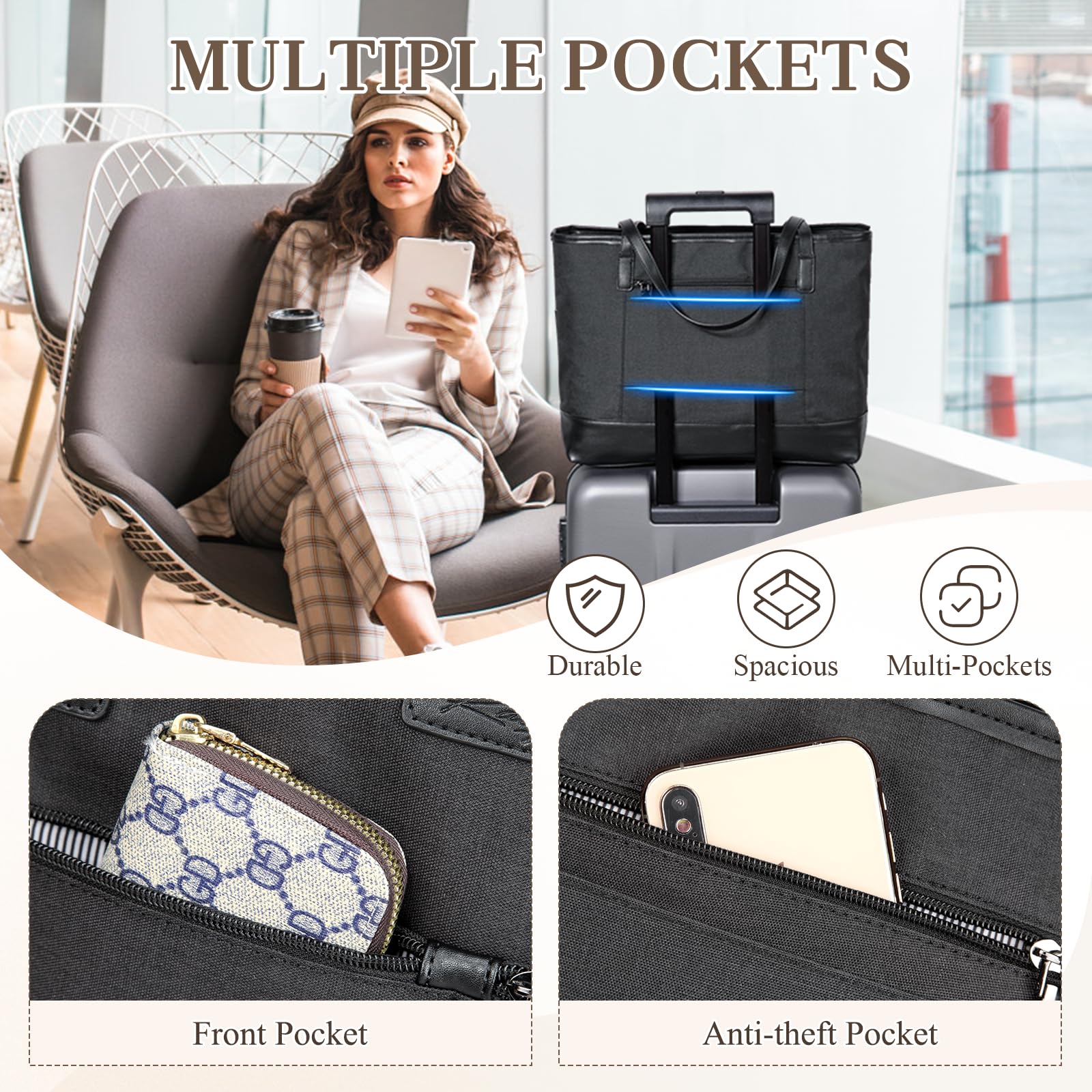 Kasgo women's handbag, large 16.8L shopper tote bag with 15.6-inch laptop compartment, water-resistant laptop bag, shoulder bag, work bag for work, travel, teachers with luggage sleeve, black.