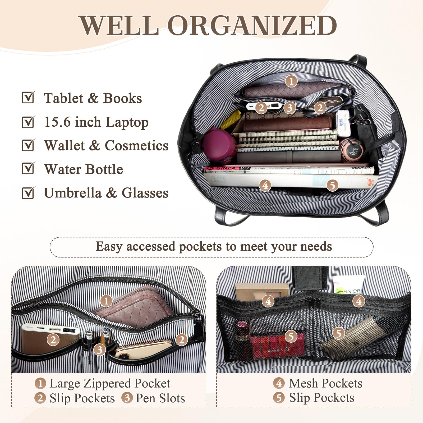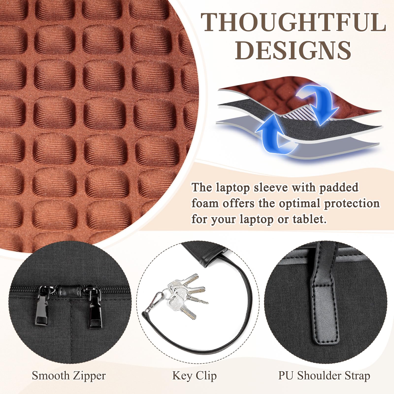 QUALITY DETAILS: The Kasgo tote bag is made of durable and water-resistant polyester, with PU leather reinforced handles and bottom, which are durable, wear-resistant, and wrinkle-resistant. The interior features a shockproof foam cushion with a flexible strap to protect the laptop perfectly, suitable for most laptops up to 15.6 inches.