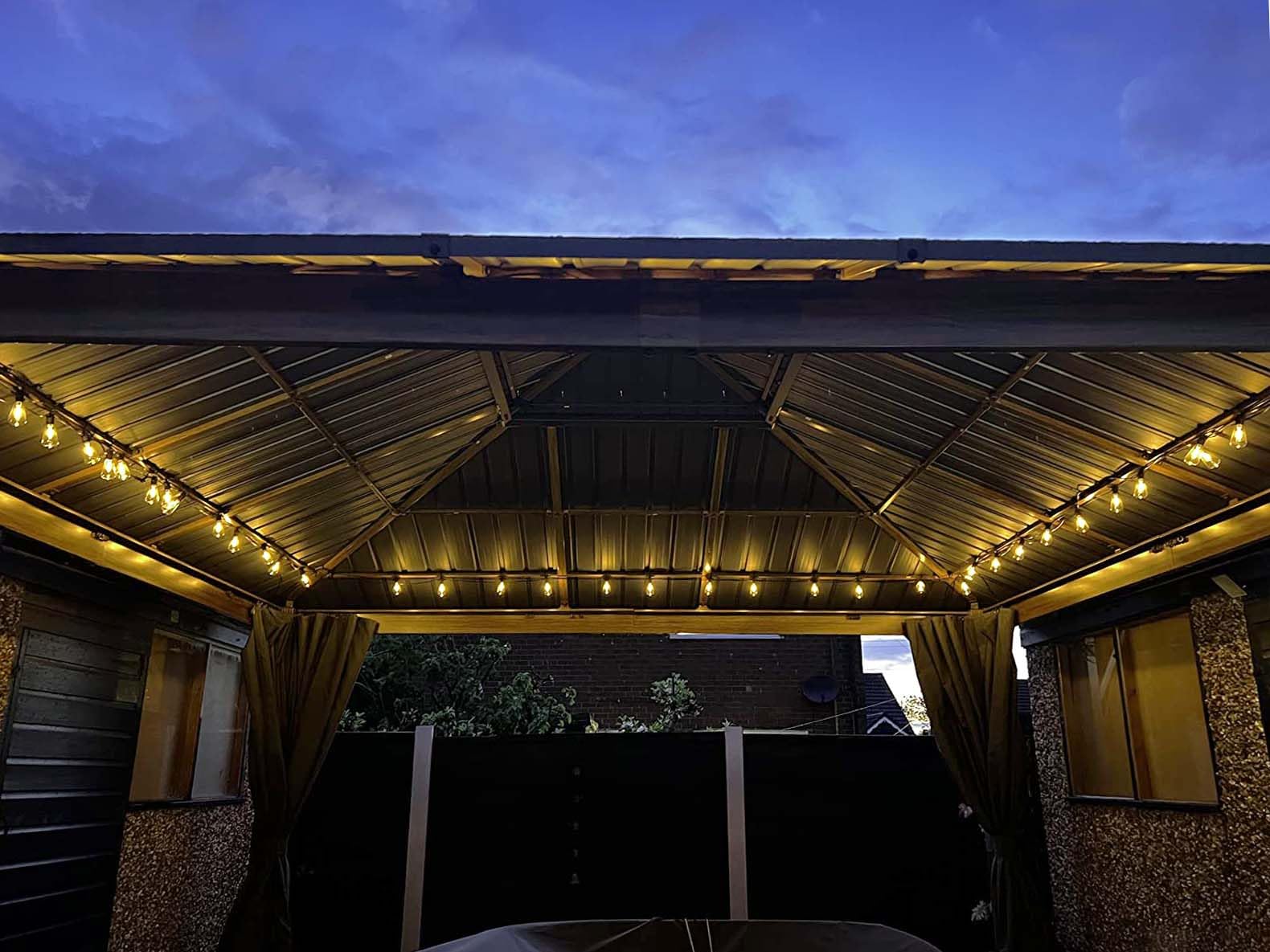 ["Efficient LED string lights】Kawaya LED string lights for outdoor use high-transparency bulbs that replace traditional tungsten bulbs. Our impact-resistant and wear-resistant plastic bulbs are sturdy and safe to use. With only 0.5W per bulb, they can replace a 7W tungsten bulb, saving you on your electricity bill without sacrificing brightness.","【IP65 Waterproof and Durable】With an IP65 waterproof design, this outdoor string lights are perfect for any weather - rainy, windy, and snowy - allowing you to enjoy the outdoor ambience. They are suitable for decoration of gardens, patios, balconies, trees, umbrellas, tents, bars, etc., without worrying about damage.","【Dimmable Warm White String Lights】Our garden string lights provide a soft, dimmable, and cozy atmosphere with 2700K warm white bulbs - perfect for indoor and outdoor spaces. The durable lighting consists of flexible wire and is skin-friendly, temperature- and aging-resistant, suitable for year-round use. (Dimmer not included).","【Expandable Balcony String Lights (100 ft)】Enjoy cozy light with this waterproof 50-LED string lights including 2 spare LEDs. The special feature: it is serially expandable! Connect multiple strings together and create individual light arrangements. Keep in mind: Up to 90 watts total power (0.5 watts per bulb) are possible.","【Easy to Install】Installing this string lights indoors and outdoors is very easy and requires no tools. Each socket has a loop for easy hanging on a rope or hook. Perfect for decorating garden, patio, backyard, bistro, cafe, balcony, wedding, party, Christmas, and others."]
