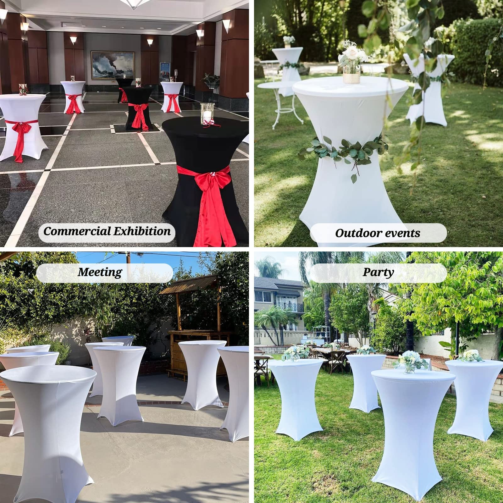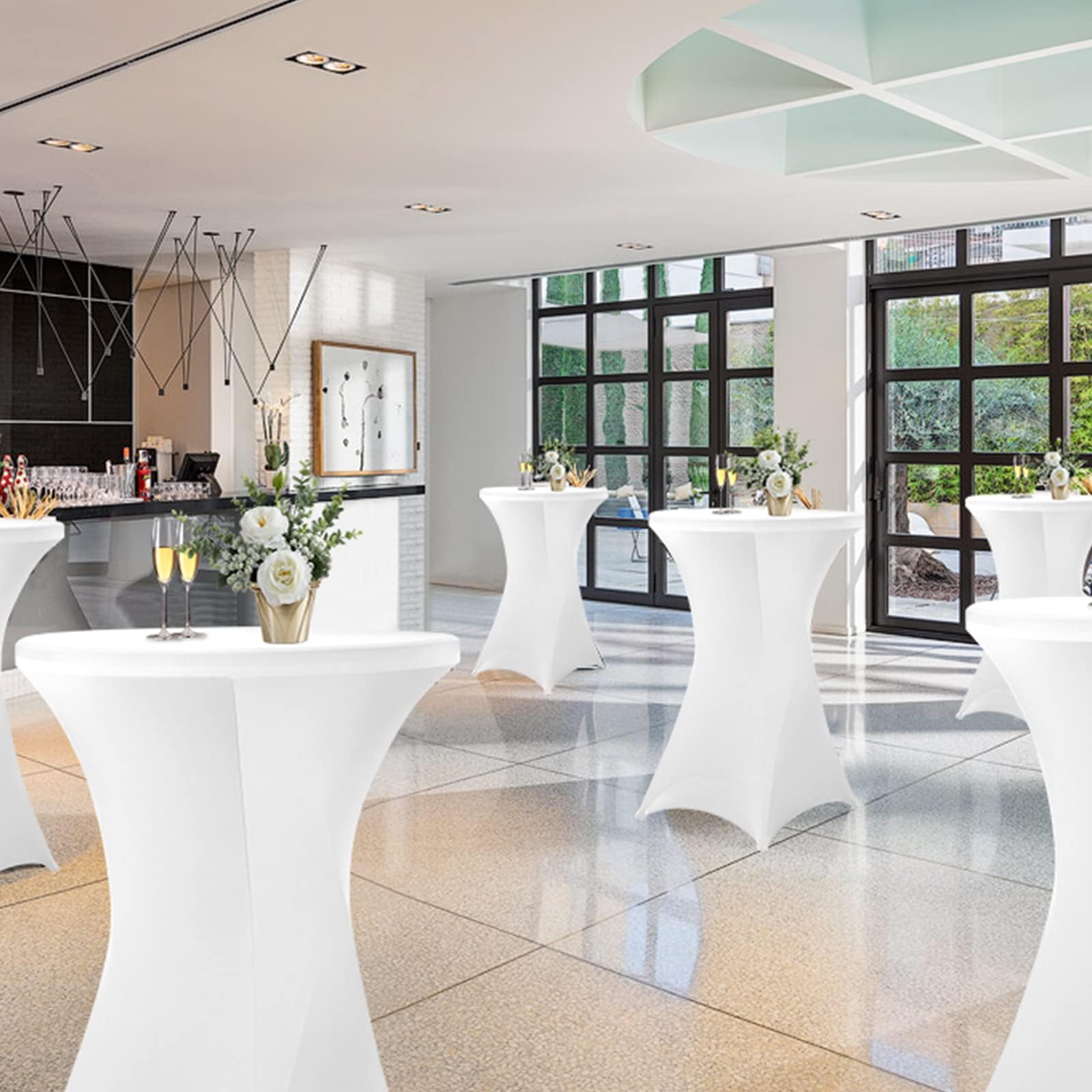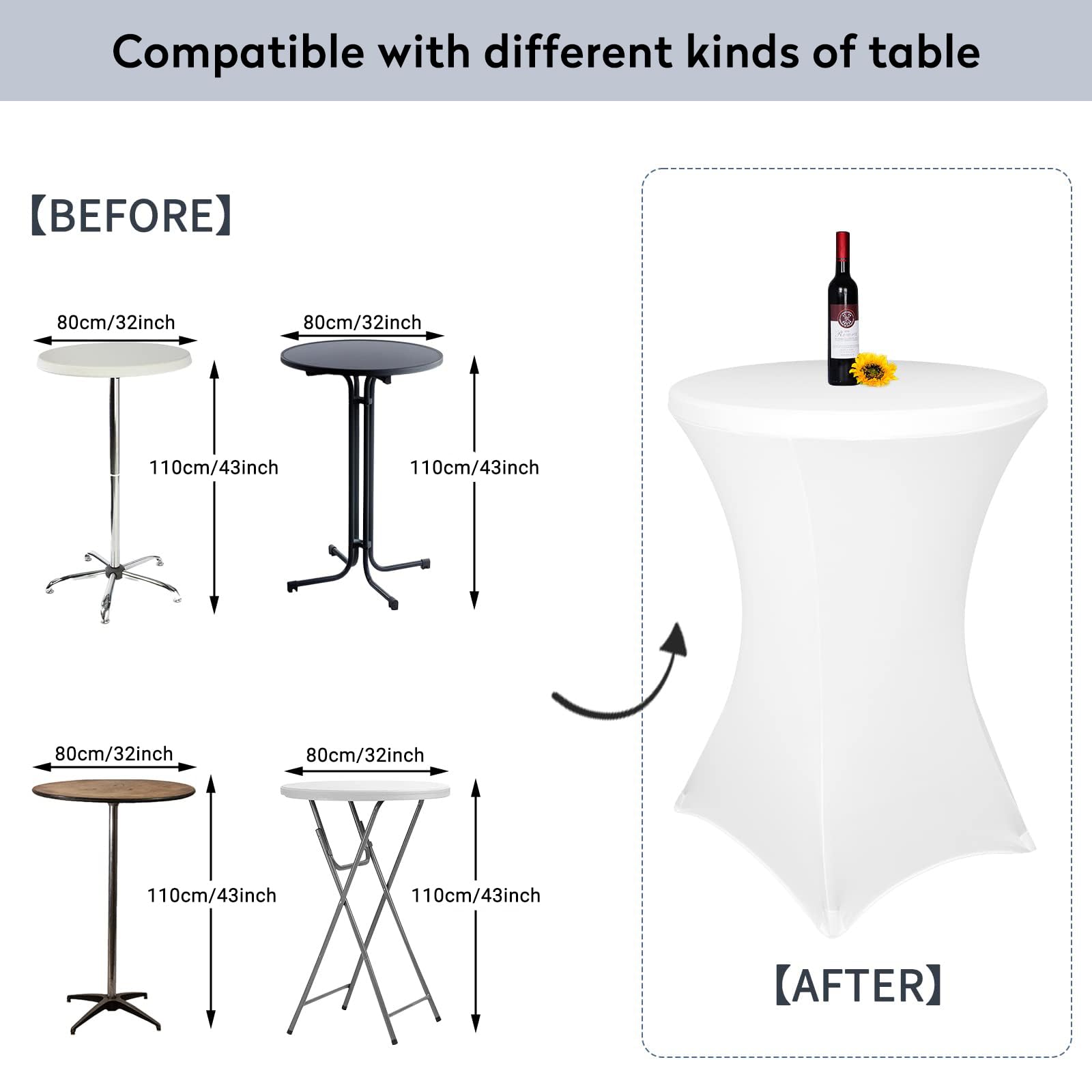 ["SPANDEX FABRIC: This high-quality cocktail table cover is made of stretchy spandex fabric (90% polyester and 10% elastane). These snug-fitting stretch tablecloths are dirt-resistant and wrinkle-free, easy to remove, protecting your cocktail tables from accidental dirt, dust, spills, scratches, and stains, keeping the table clean, tidy, and beautiful.","PERFECT FIT: Thanks to the highly elastic and stretchy material, the covers can be easily placed on round cocktail or bistro tables with a diameter of 80-85 cm. The sewn reinforcements on the Oxford polyester table feet will protect the heavily used feet well.","ELEGANT DESIGN: Create a stylish atmosphere at events, garden parties, or weddings. The elegant covers from KAYBTNT enhance cocktail tables, quickly and easily turning them into eye-catchers.","VERSATILE USE: Elastic spandex cocktail table covers are suitable for Christmas, Easter, Halloween, Thanksgiving, weddings, parties, celebrations, and can also be used for hotel receptions, craft fairs, jewelry displays, buffets, etc.","WASHABLE & EASY CARE: The covers are reusable. The durable and easy-care stretch fabric covers can be machine washed at 30°C. Please do not bleach or iron."]