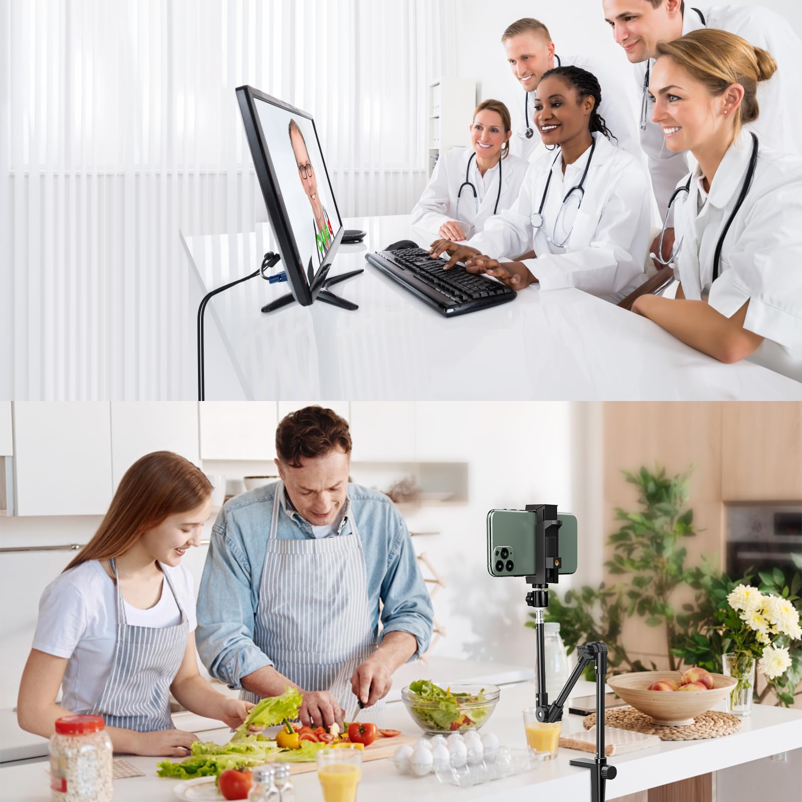 KDD Webcam Mount Camera Stand 55.1cm, with Phone Holder & 5/8" Screw, Light Stand Clamp 360° Gooseneck for Logitech C922 C930e C920 C925e C615 Brio 4K, GoPro Hero Blue Yeti