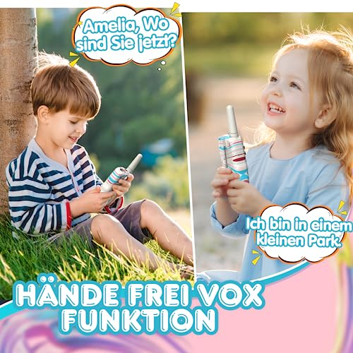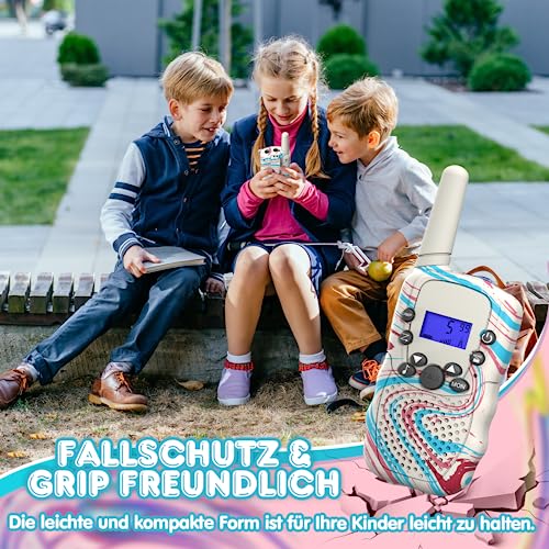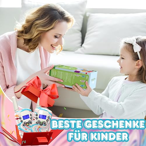 ["Perfect Gift for Kids: Gift for 3-12 year old boys, gifts for teenage girls, walkie talkies for kids, gifts for teenage boys, birthday, Easter gifts. Ideal for indoor and outdoor activities like shopping, spring outings, and summer camping. The kids walkie talkies are also perfect Easter gifts for kids girls boys.","[Clear Sound and Key Lock Function]: Our kids walkie talkies feature a cool call alert function, clear and uniform sound quality with adjustable volume. Equipped with the key lock function, it is not easy for kids to change channels, enhancing the fun of parent-child interaction. Gifts for 3 4 5 6 7 8 9 year old boys and girls at Halloween-Christmas birthday parties, etc.","[Ergonomic Design]: The small and lightweight body allows children to operate easily and only 90g per walkie-talkie are easy to carry. Thanks to the ergonomic design, they fit comfortably in children's hands. An easy push-to-talk button makes this toy easy to use for 3-12 year old girls.","[Perfect Adventure Kids Toys]: The situation can be real-time monitoring of children, an anti-lost system, smart alarm system, etc. Stay in touch with your friends and families, especially during outdoor activities, the best outdoor toy and Easter gifts for toddlers aged 3-5 years boys and girls.","[User-Friendly]: Modern compact design. Easy push-to-talk operation, double click to activate a single beep. Transmission to one or multiple devices, use of different channels."]