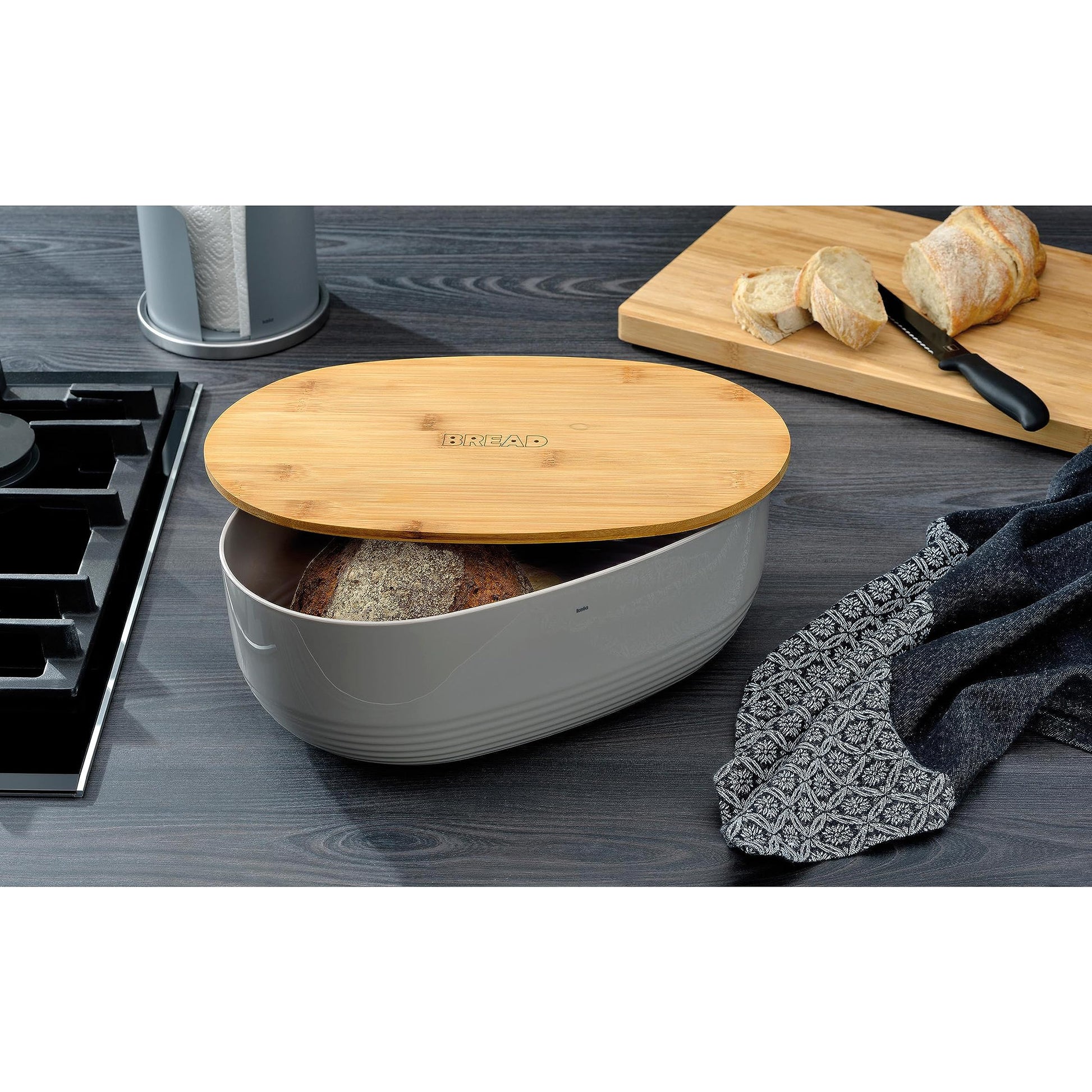 kela Bread Box grey with ventilation holes in bamboo lid 37.5x23x14cm, plastic bread bin, NAMUR, bread storage box
