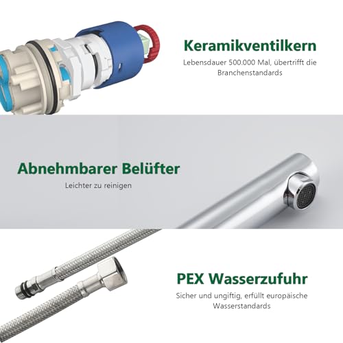 "Gentle Water Stream: Our faucet is equipped with a removable aerator that refines and softens the water flow. This effectively reduces splashing and saves 40% water while enjoying a pleasant water stream.",