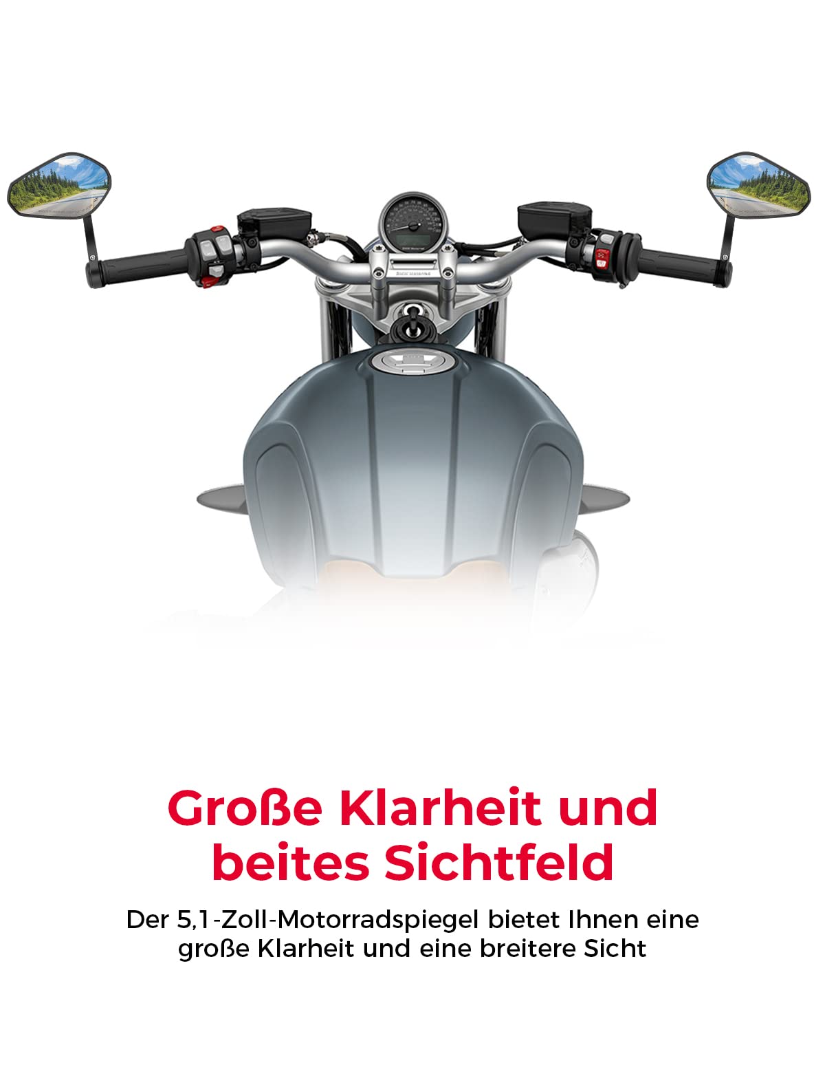 "Durable and solid: These E-marked stylish handlebar end mirrors for motorcycles with exceptional appearance and sturdy structure are shock and corrosion resistant, perfectly fitting your bike.