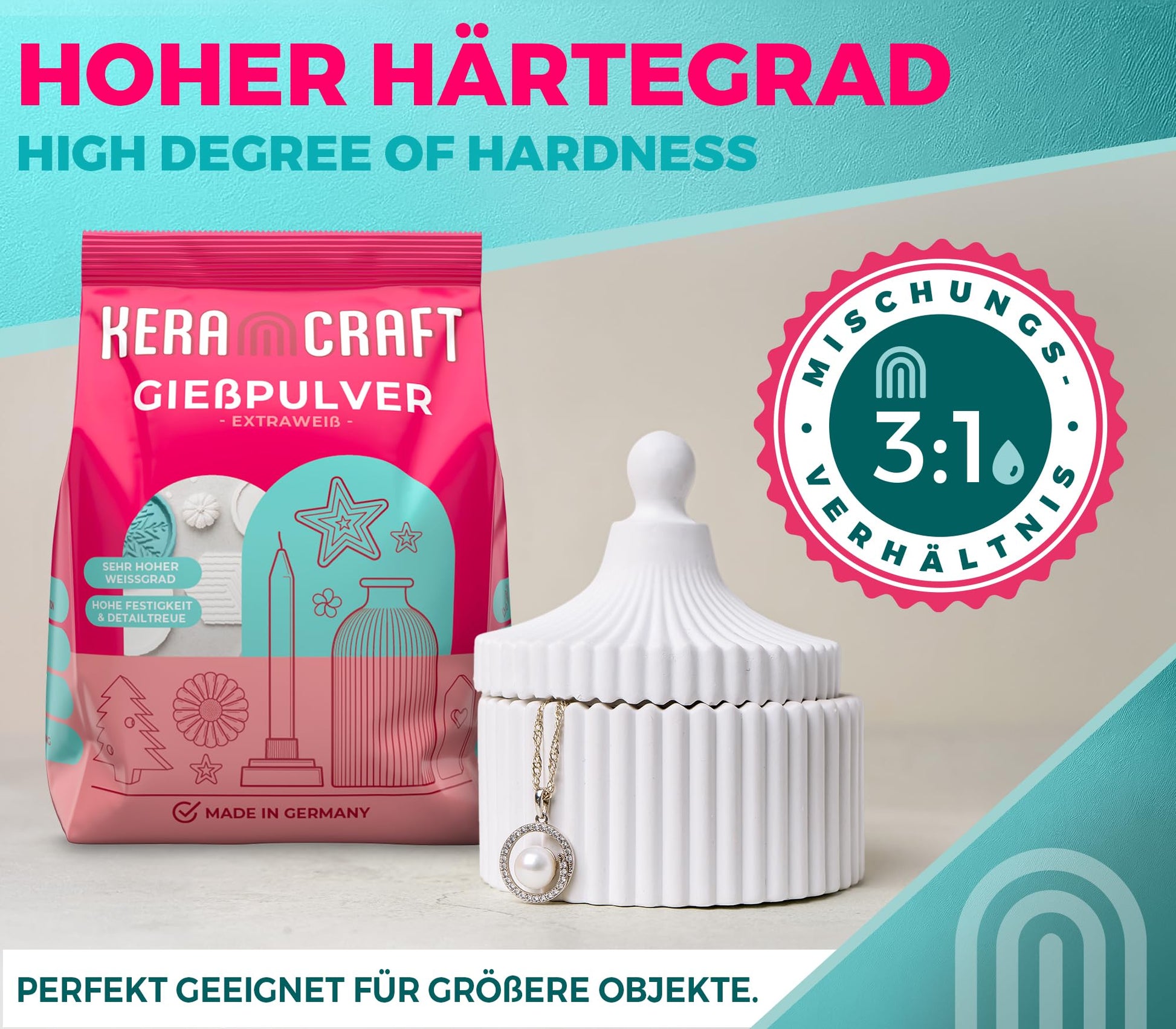 High stability - Keracraft's relief casting powder achieves a high strength of 200N/mm. The product is also suitable for larger objects such as decorative plates and vases.