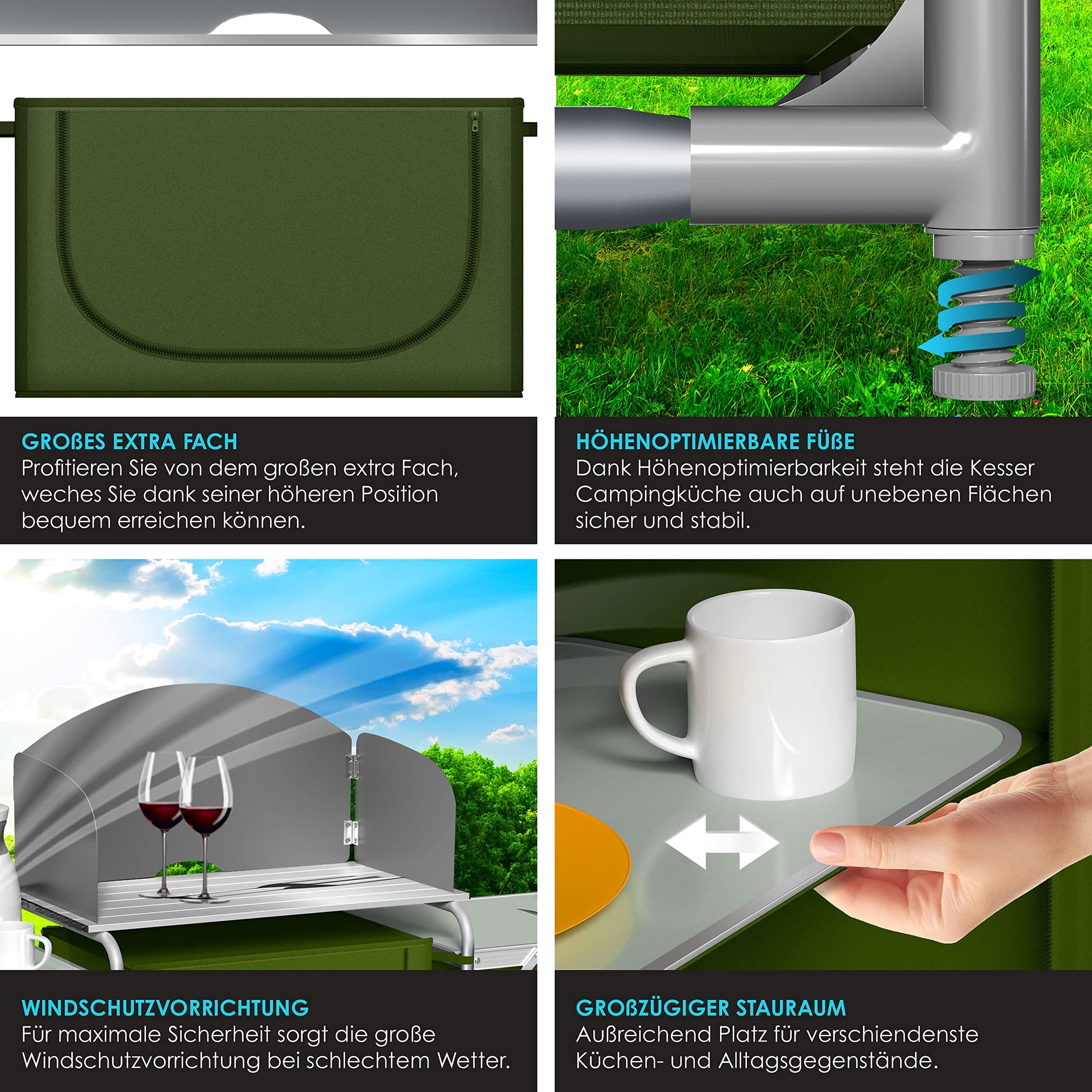 KESSERยฎ camping kitchen | Includes carrying bag & cup set | Folding camping cabinet | with aluminum frame | Travel kitchen | Kitchen box | Tent cabinet | Outdoor camping kitchen | Khaki | Type Big