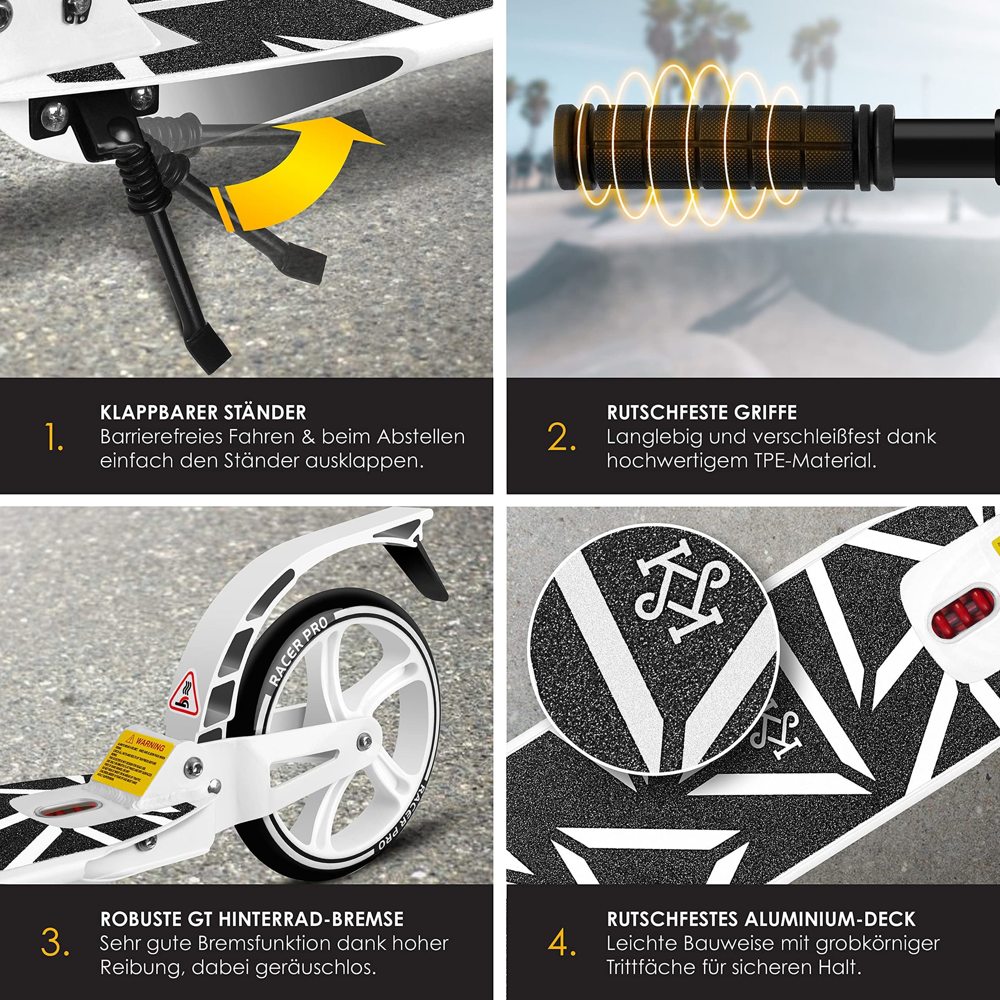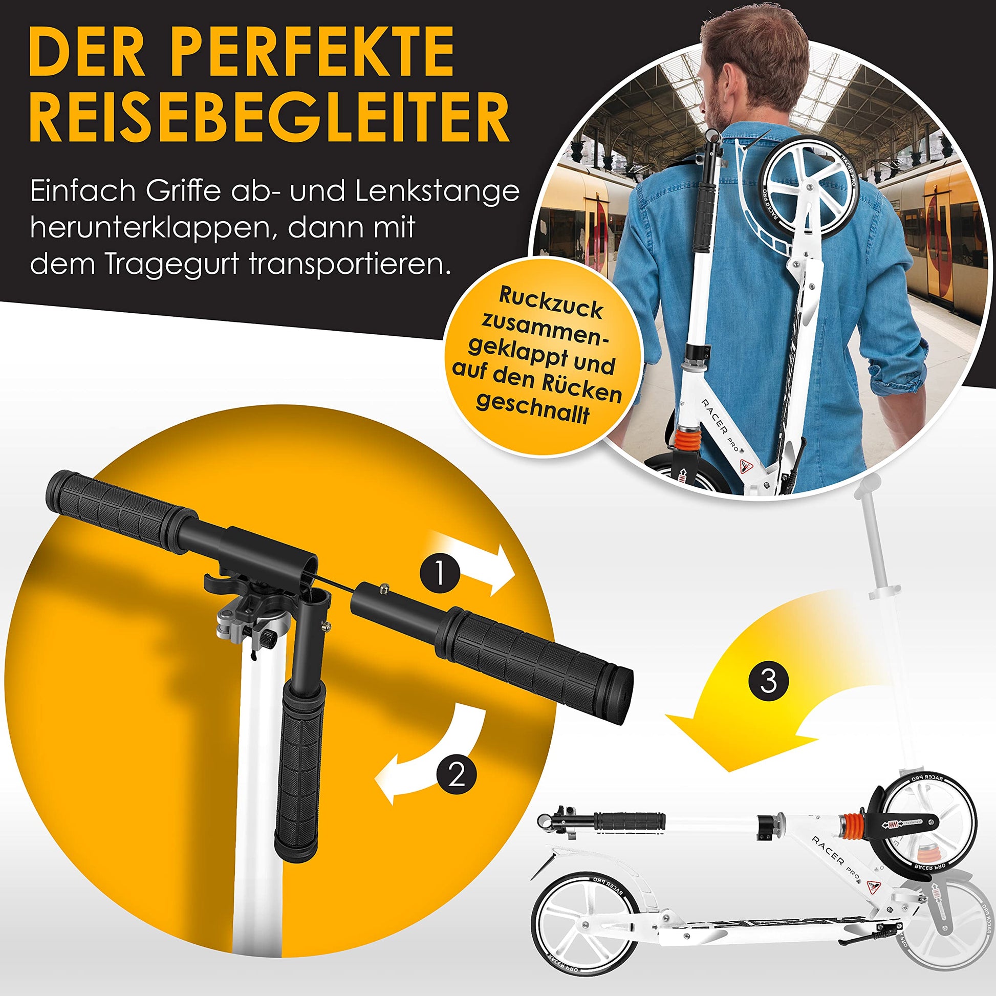 KESSER® City Roller Scooter 205mm wheels PU Big Wheel - Pro-S kick scooter with double suspension, foldable and adjustable height city roller scooter, kickscooter for adults and kids, White
