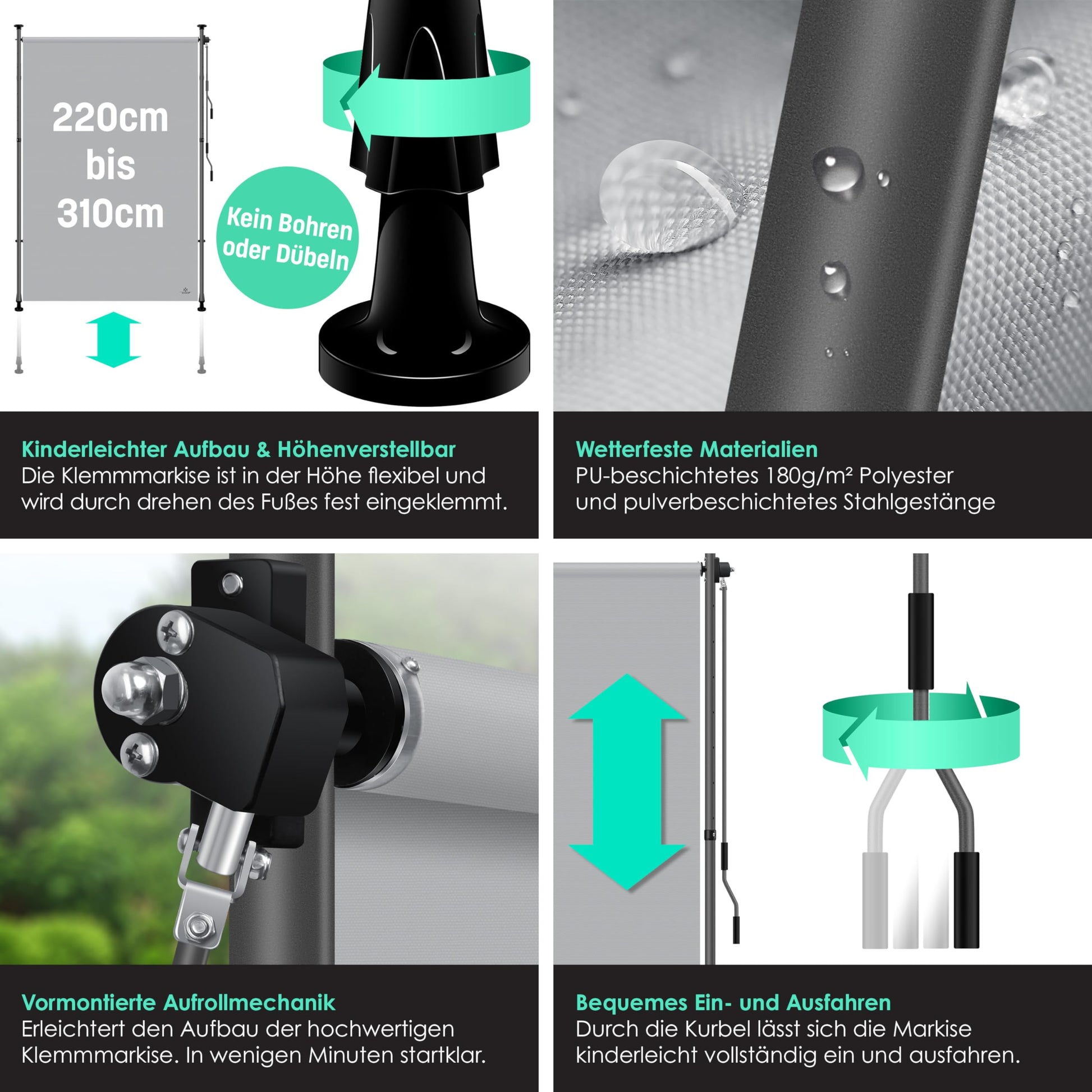 KESSERยฎ Clamp Awning Vertical Awning 200x310cm Extendable & Privacy Vertical Awning with Hand Crank No Drilling Balcony Privacy & Wind Protection for Garden & Terrace Waterproof Gray