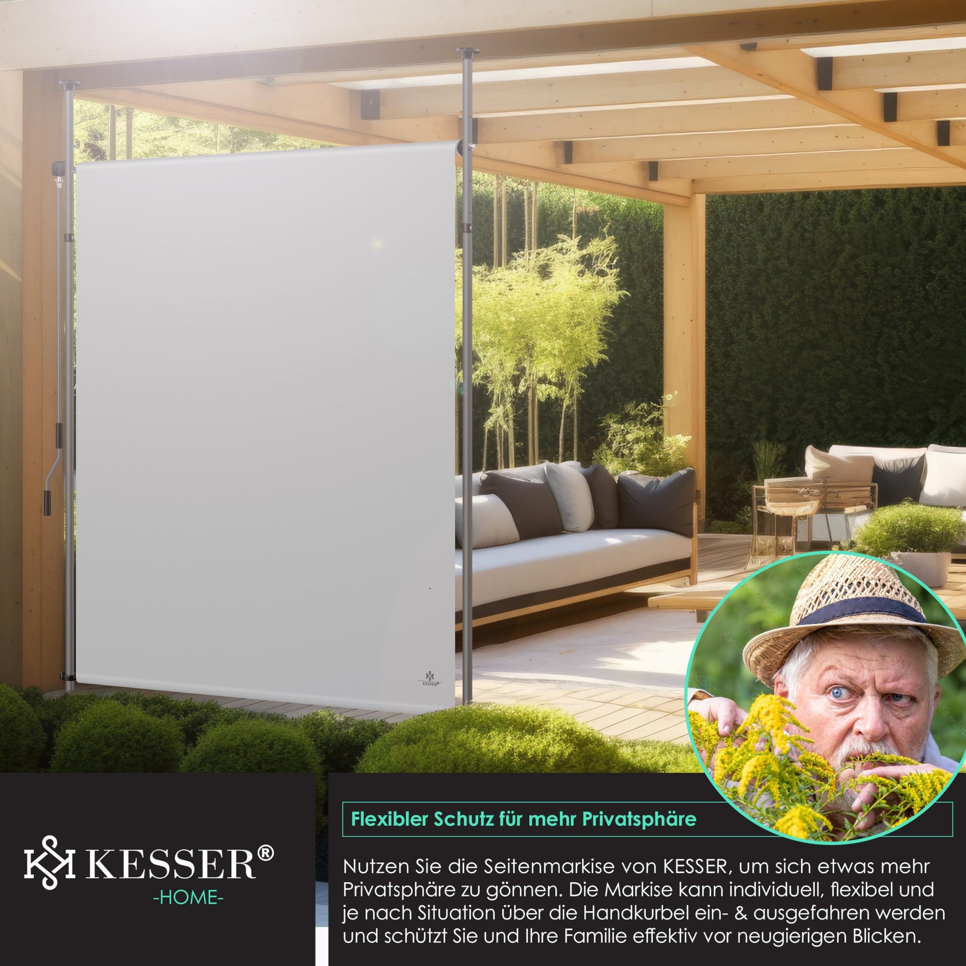 "๐๐‘๐„๐Œ๐ˆ๐”๐Œ ๐’๐‚๐‡๐”๐“๐™ ๐•๐Ž๐‘ ๐„๐‹๐„๐Œ๐„๐๐“๐„๐: The vertical awning KESSER offers outstanding protection from the elements. The high-quality material, consisting of a powder-coated aluminum housing and a durable fabric with PU coating, ensures reliability and durability. Even in strong winds, you will stay protected thanks to the stable guide eyelets. ๐…๐‹๐„๐—๐ˆ๐๐‹๐„ ๐€๐๐๐€๐’๐’๐”๐๐†๐’๐Œร–๐†๐‹๐ˆ๐‚๐‡๐Š๐„๐ˆ๐“๐„๐: With the vertical awning KESSER, you can customize your outdoor environment according to your needs. The height can be adjusted individually from 7.22 feet to 10.17 feet, and the awning can be effortlessly extended and retracted. Thanks to various size options, it fits perfectly in your space. The easy installation without drilling and anchors allows for a quick and uncomplicated setup. ๐™๐„๐ˆ๐“๐‹๐Ž๐’๐„๐’ ๐ƒ๐„๐’๐ˆ๐†๐ ๐”๐๐ƒ ๐„๐ˆ๐๐…๐€๐‚๐‡๐„ ๐‡๐€๐๐ƒ๐‡๐€๐๐”๐๐†: The design of the vertical awning is not only timeless and elegant but also extremely functional. The pre-assembled winding mechanism makes assembly easy, while the powder-coated aluminum housing ensures stability and durability. The construction guarantees a long lifespan and minimizes maintenance effort. The hand crank operation allows for convenient adjustment to your needs. ๐•๐ˆ๐„๐‹๐’๐„๐ˆ๐“๐ˆ๐†๐„ ๐€๐๐–๐„๐๐ƒ๐”๐๐†๐’๐Œร–๐†๐‹๐ˆ๐‚๐‡๐Š๐„๐ˆ๐“๐„๐: The vertical awning KESSER is versatile and ideal for balconies, terraces, and gardens. It not only provides effective visual and wind protection but also creates a private atmosphere outdoors. Thanks to its weather and UV resistance, it can be used year-round, adding a touch of luxury and comfort to your outdoor area. ๐Š๐Ž๐Œ๐…๐Ž๐‘๐“ ๐”๐๐ƒ ๐™๐”๐…๐‘๐ˆ๐„๐ƒ๐„๐๐‡๐„๐ˆ๐“ ๐†๐€๐‘๐€๐๐“๐ˆ๐„๐‘๐“: With the vertical awning KESSER, you can enjoy first-class outdoor comfort. The easy assembly without drilling and anchors, sturdy construction, and maximum flexibility make your outdoor experiences stress-free and relaxed. Invest in quality and experience carefree hours outdoors with the vertical awning KESSER."
