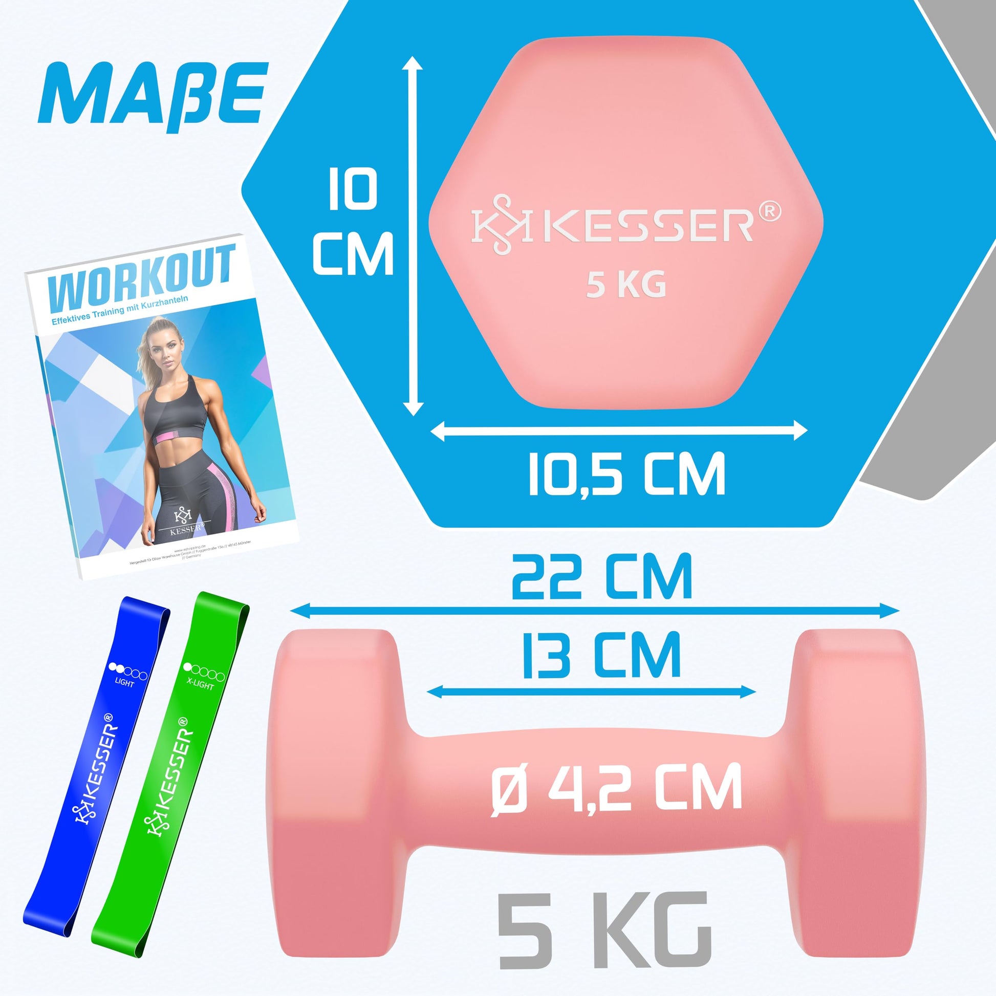 KESSER® Dumbbells Dumbbell Set 2 pieces 2kg - 5kg colored, Dumbbells Neoprene, Hexagon, Strength Training, Workout, Fitness Training, for Home With Exercise Booklet, 2x Fitness Bands