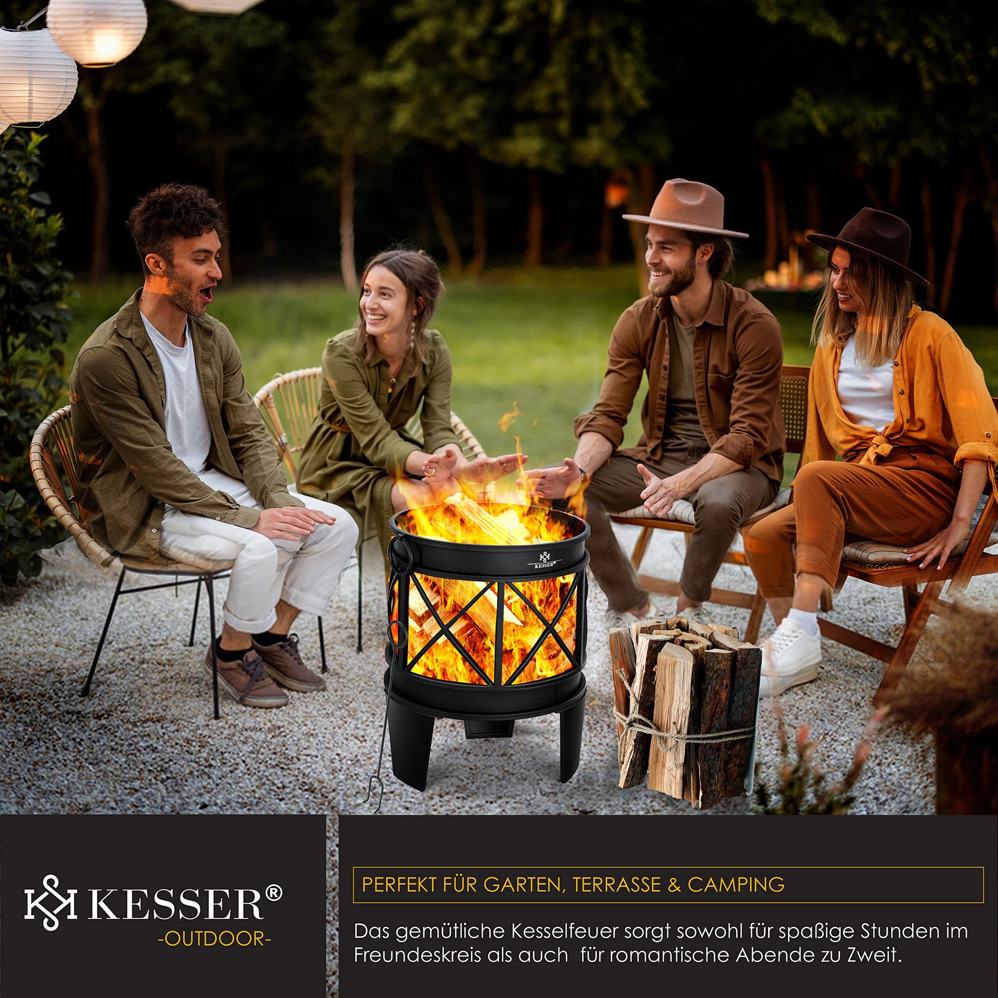 KESSERยฎ Fire Bowl Including Cover Fire Pit with Spark Protection & Handles + Poker Fire Place 58 x 45 cm for Garden & Terrace Metal Antique Rust Look Multifunctional Fire Pit Heater BBQ Black