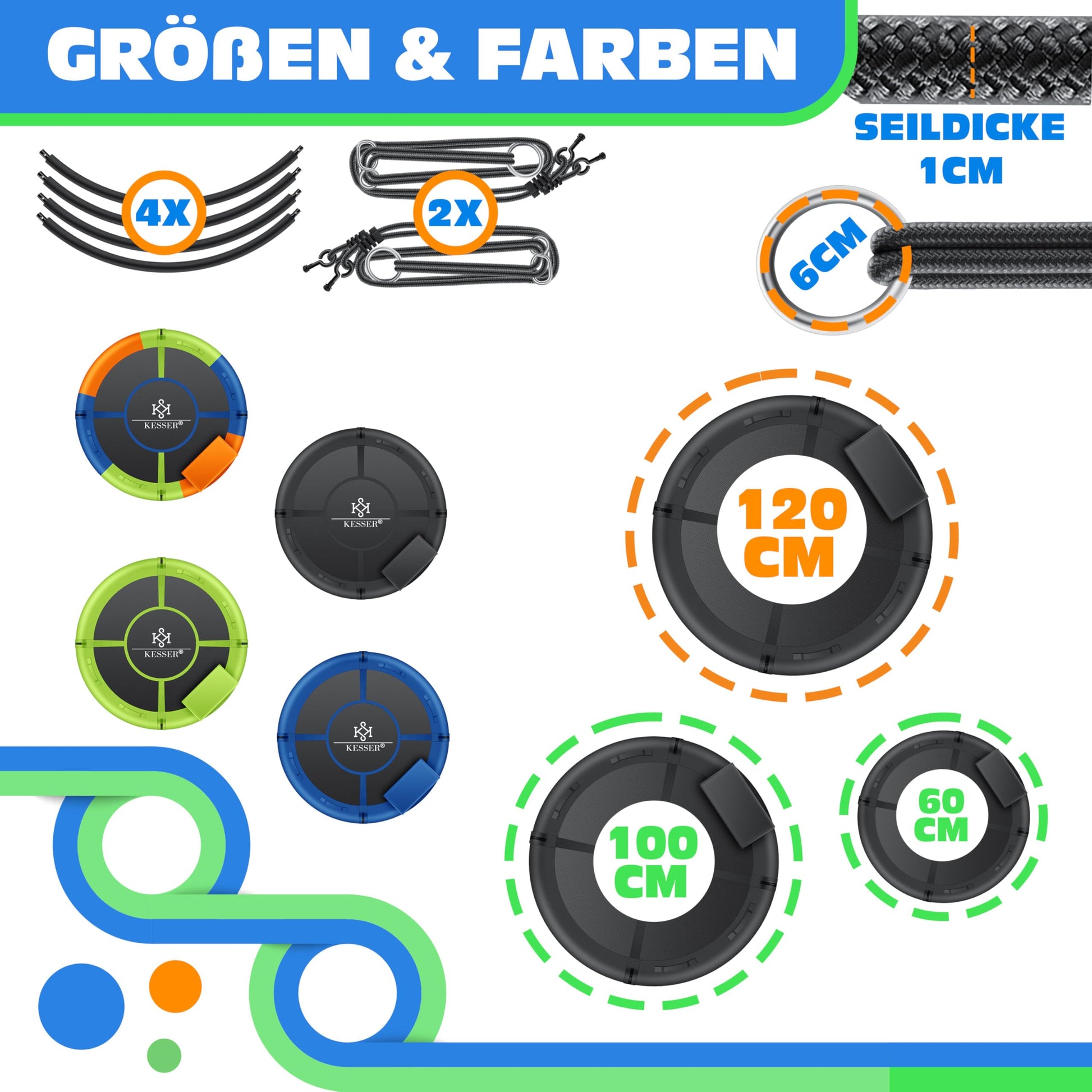 ["HOCHWERTIGES MATERIAL: Bring the most fun part of the playground right to your home! The KESSER round swing leaves nothing to be desired. The assembly is uncomplicated and quick to do. Due to the easy-to-clean materials, you can simply wipe the swing with a damp cloth. Thanks to the advantageous materials, the swing is ideal for indoor and outdoor use.","HÖHENVERSTELLBARKEIT: The playground swing is height adjustable. In combination with the high load capacity, you can also use the swing without any problems (provided it's free). The extra thick and tear-resistant PE rope allows the hanging swing to withstand higher loads. Thanks to the high stability and high-quality workmanship, you benefit from optimal safety during meditation, yoga, or pure relaxation.","FÖRDERT SPIELSPASS: The round swing, thanks to its weather-resistant materials, is a durable companion for young and old! Spend valuable moments with your loved ones and swing away all your worries! Quickly hung up and securely fastened, several children can let off steam at the same time. It is very popular for playing and especially at children's birthdays! Improving motor skills and training balance is an additional advantage.","FÜR KLEIN UND GROß: The children's round swing is becoming increasingly popular among our kids because it offers a large seating area for multiple people in addition to the fun of playing. Parents even have the opportunity to swing with their children and relax. Enjoy relaxing moments, whether alone or with your loved ones, and float above the ground in the truest sense of the word.","SCHNELLES AUF- UND ABBAUEN: Thanks to the clever Velcro system of the swing pad, you can set up and take down in no time. Our nest swing with cushion & 4 handles is the ideal toy for your children. Especially in summer, our little ones are drawn outside, where they can play with other children or spend their time discovering new things. Classic playground equipment like a sandbox or a swing should not be missing here."]