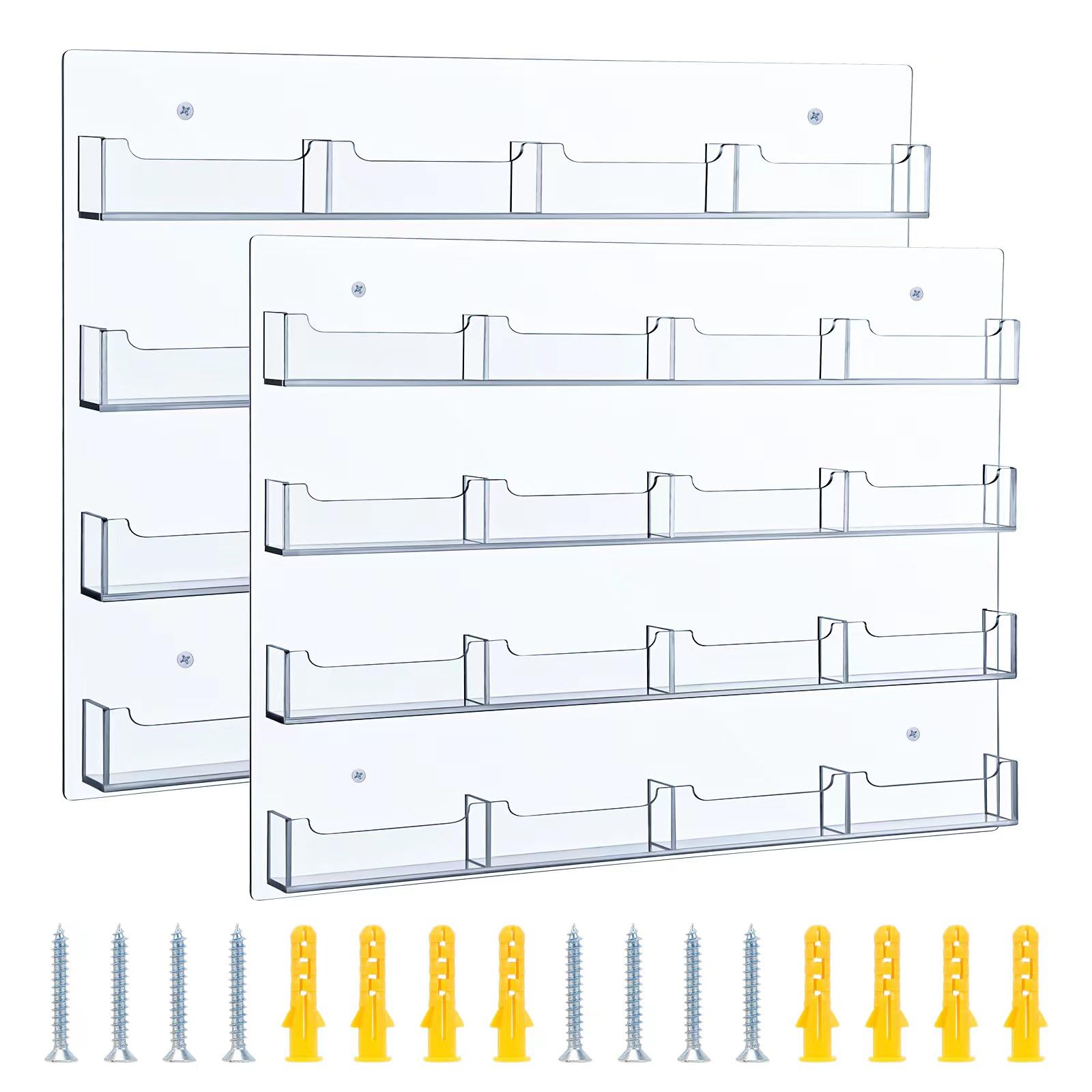 Keweni Acrylic Business Card Holder Wall Mount, Clear Sticker Display Rack Multiple clear acrylic card organizers Sticker display stand Pre-drilled index card storage 2PCS
