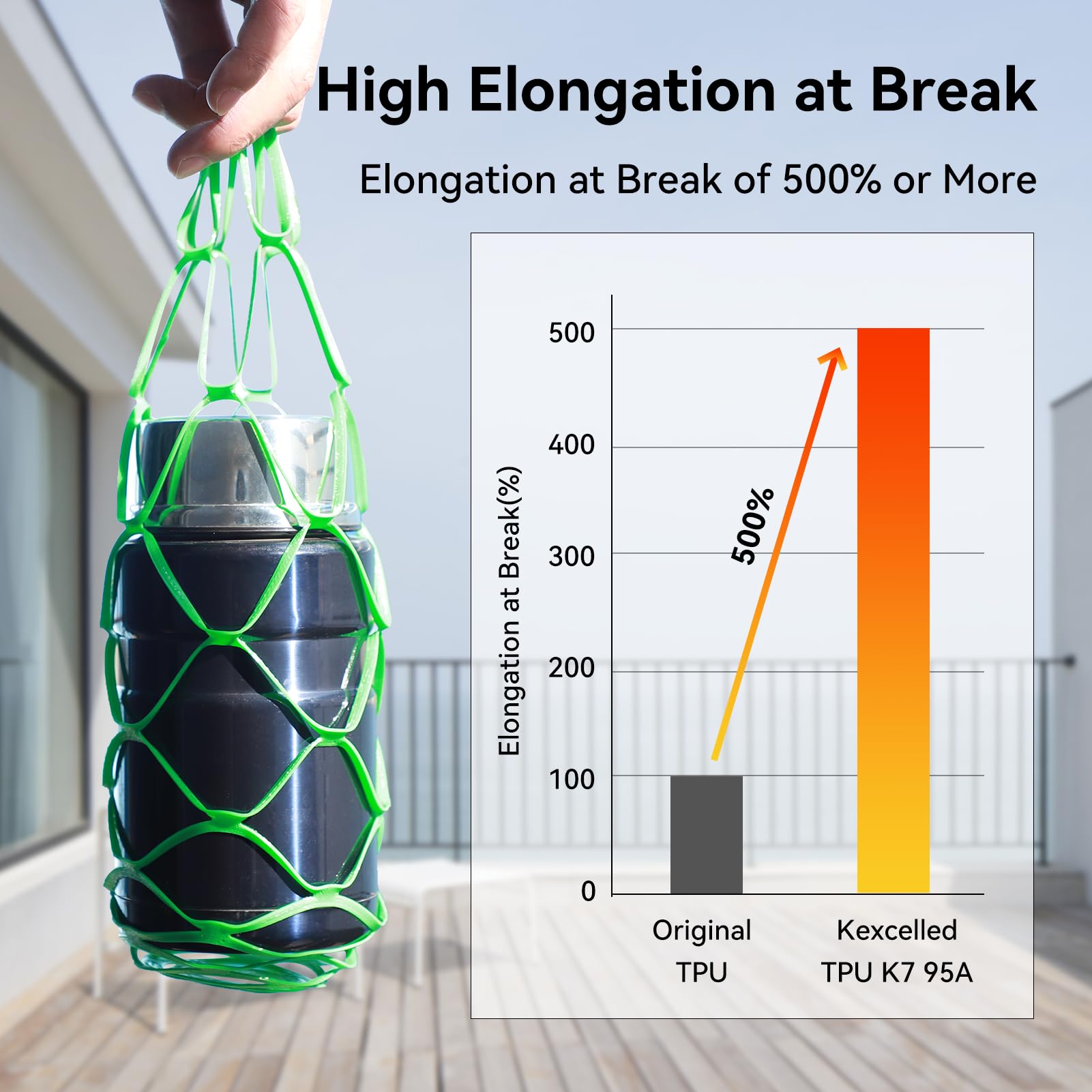 kexcelled TPU 95A filament, flexible and soft, excellent elasticity, 1.75mm 1kg spool, 3D printer material, vacuum sealed, for FDM printers, red.