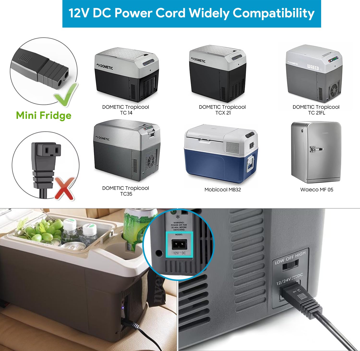 KFD 12V/24V Cooler Replacement Cable for DOMETIC Tropicool TCX 21, TB 08, TC 21FL, TC 14, TC 35, Mobicool MB32, Waeco MF 05 Car Mini Fridge Car Charger Compressor Cigarette Lighter Adapter Cable