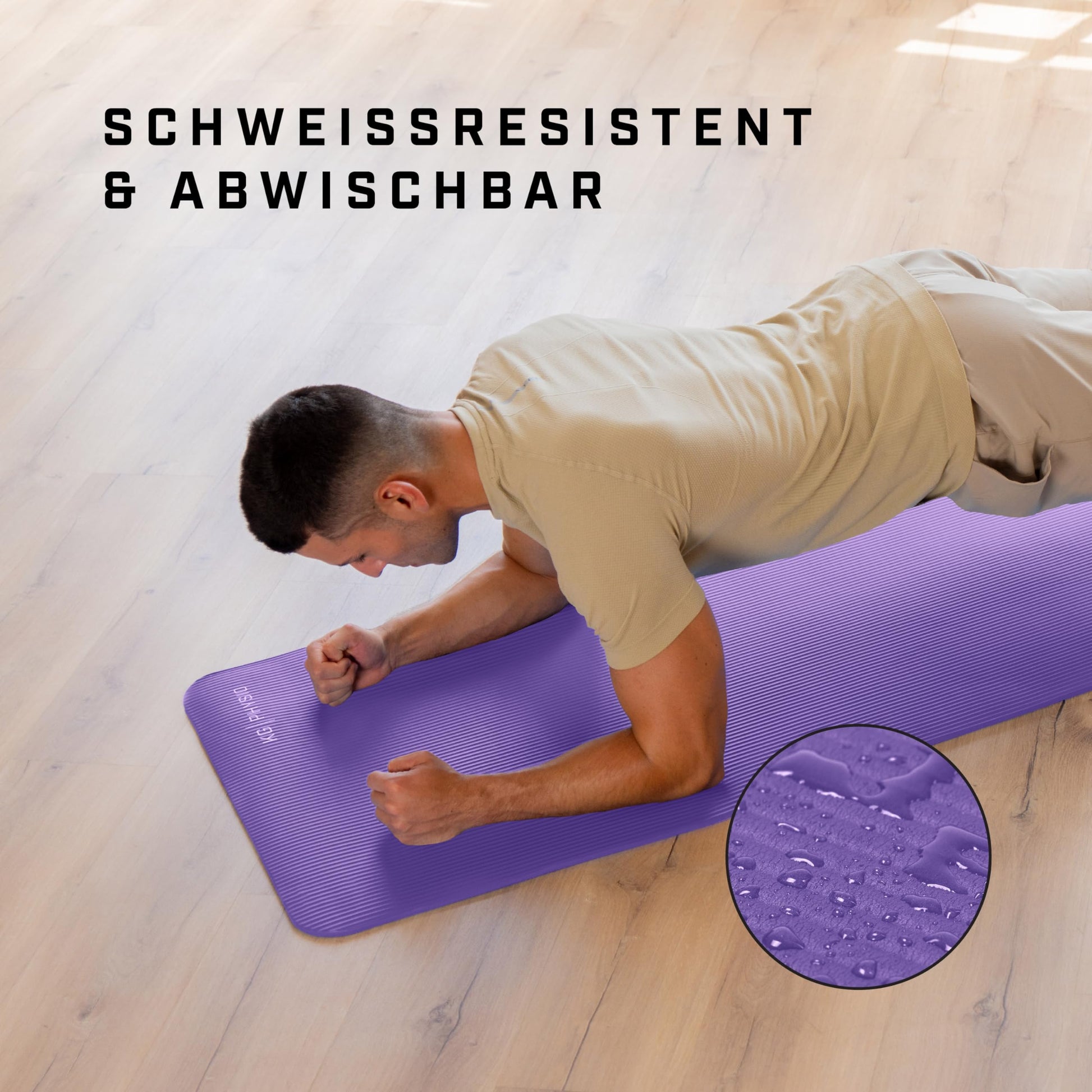 "SWEAT-RESISTANT & EASY TO CLEAN: The water-resistant and sweat-resistant exercise mat can be easily cleaned with a damp cloth. Our fitness mats are available in eight intense colors as well as in classic black!"
