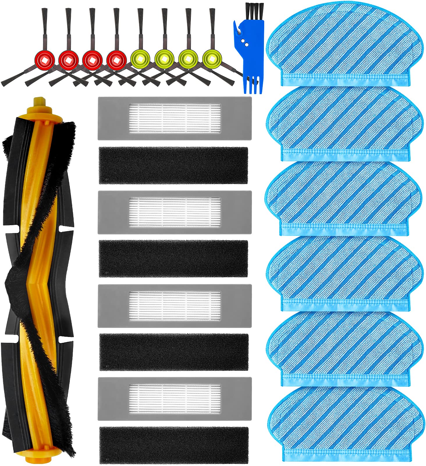 ["Accessories compatible with Ecovacs -- Non-original product. The wipes are as thick as the originals from the 950/920, Great alternative to the replacement parts, can also be used with Yeedi 2 Hybrid.","20-Piece Value Kit -- Includes all necessary parts, 1 roller brush + 8 side brushes + 6 wipes + 4 filters + 1 cleaning brush. Our accessories are ONLY compatible with Ecovacs Deebot OZMO 950 920 Robot Vacuum, Not compatible with other models.","Premium Quality -- All cleaning sets made of high-quality materials fit perfectly on your 950/920 and offer a long service life. They promise to capture and retain dust and particles, keeping your home clean and dirt-free.","Easy Replacement -- replacing the parts is easy. Clean the filter frequently and replace the brush. Replace the filter every 2-3 months to ensure the long-term maximum performance of your Deebot.","Thank you for choosing our KGC brand."]