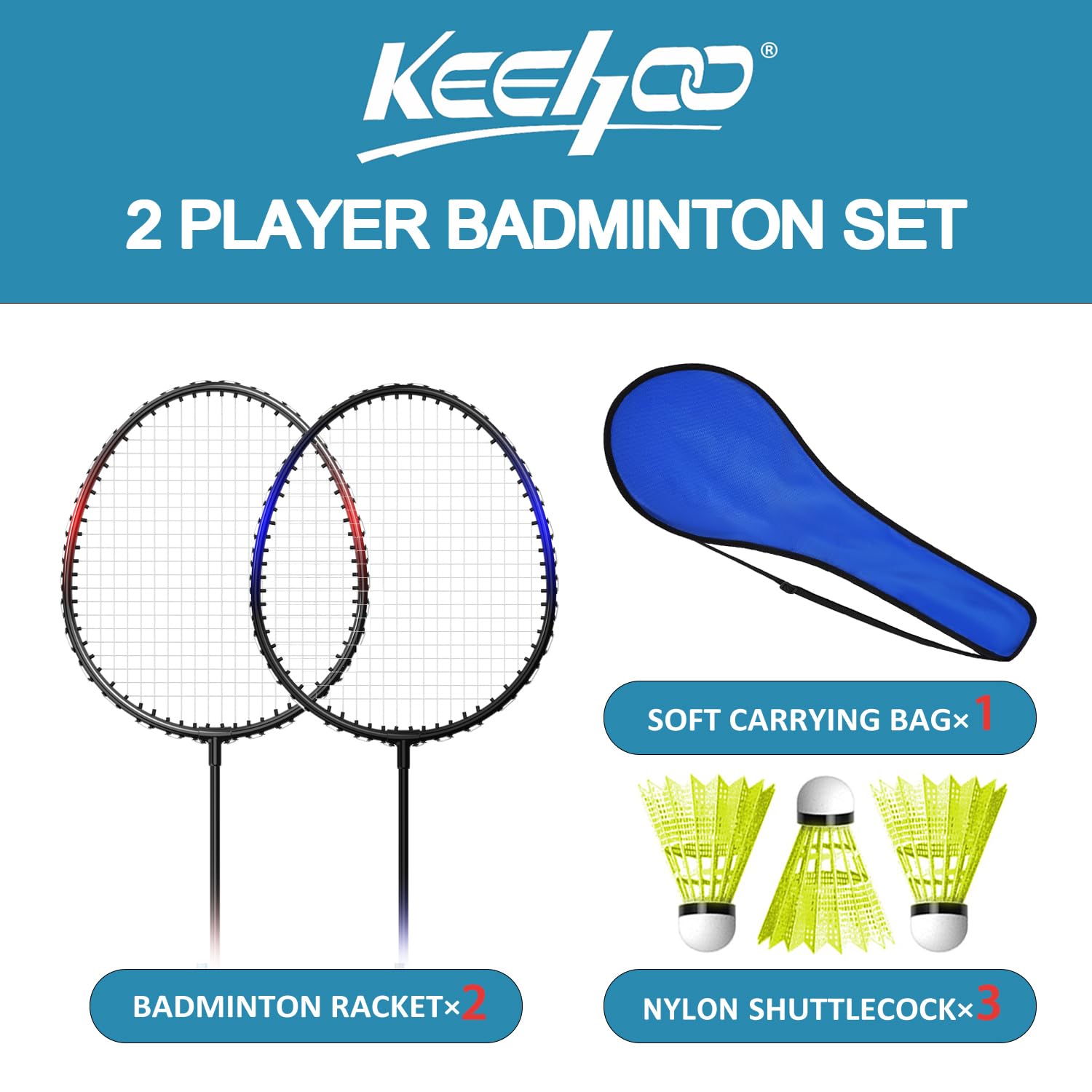 KH Badminton racket set for 2-4 players, for adults and kids, perfect for family backyard sport games. Includes rackets, shuttlecocks, and carrying case.