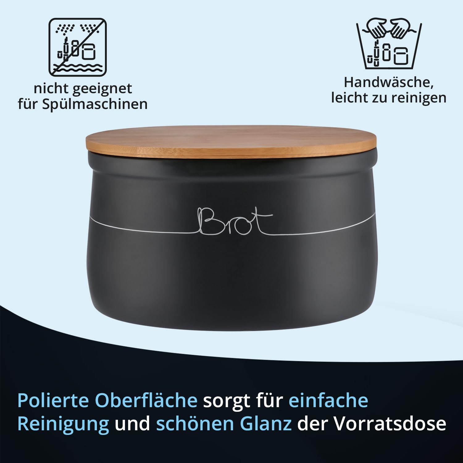 "Natural & sustainable π Made from high-quality ceramic stoneware and a lid made of real bamboo wood, we focus on natural raw materials and environmentally friendly production. BPA-free and sustainable - for conscious and healthy bread storage."