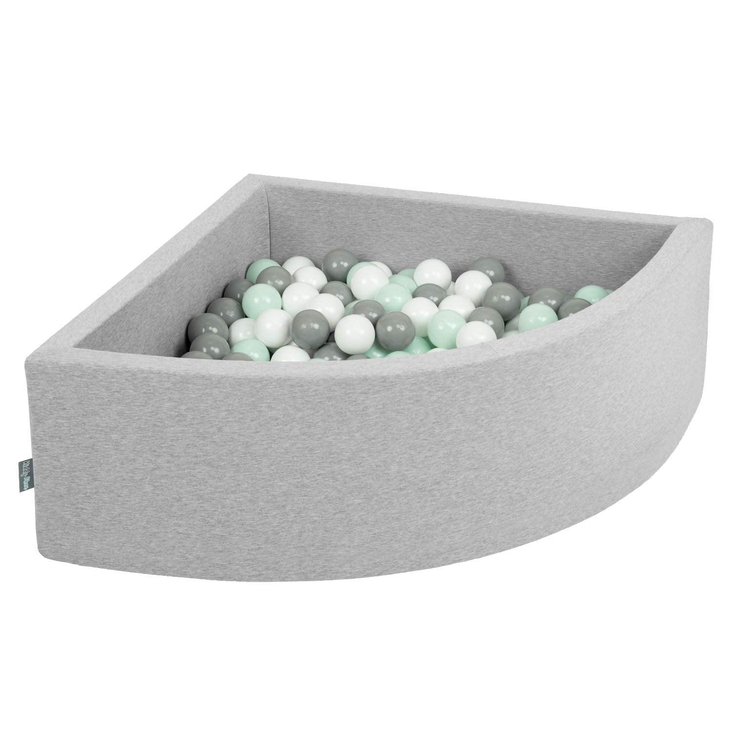 KiddyMoon Quarter Square Ball Pit Ball Pool 90X30cm/300 Balls ∅ 7cm Ball Pits for Babies Toddler Playpen, Made in the EU, Light Grey: White/Grey/Mint