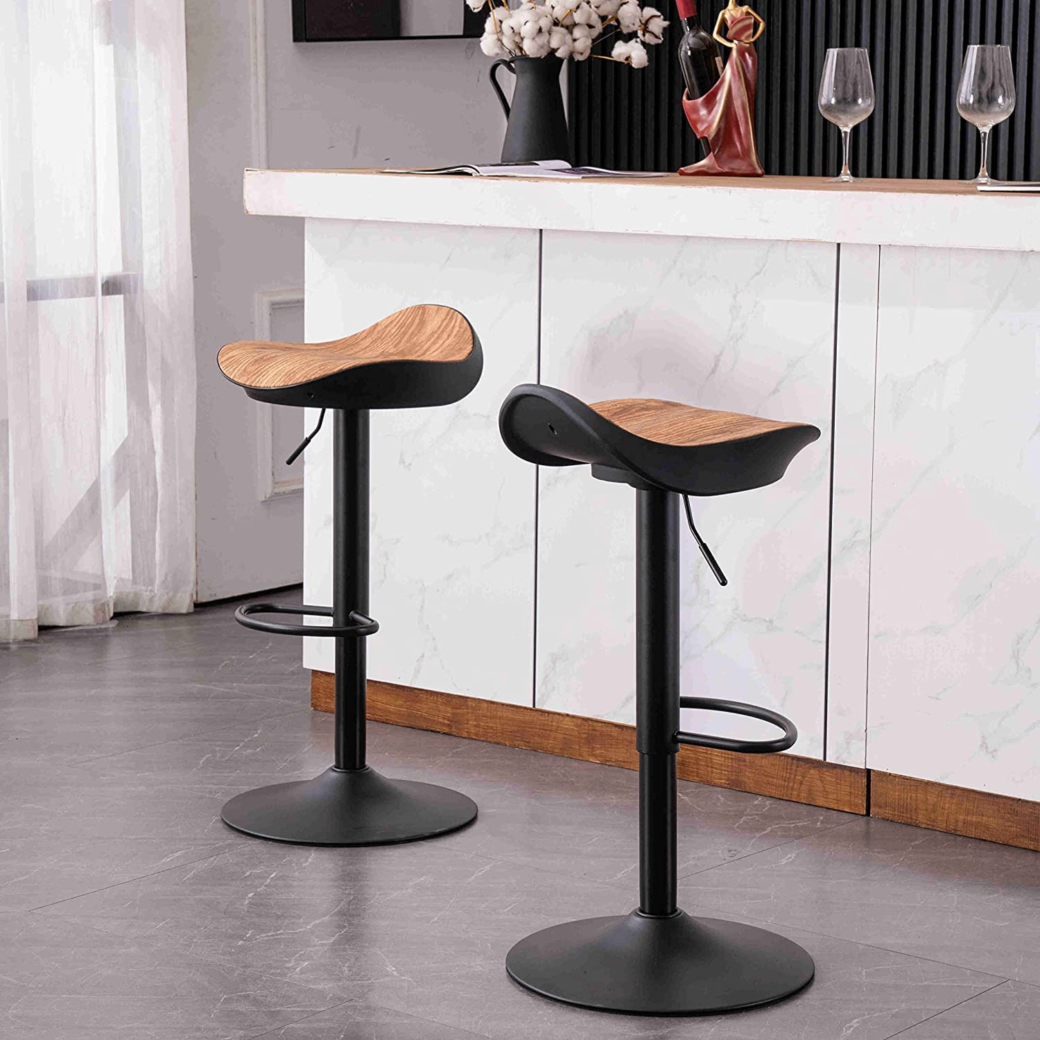 Kidol & Shellder Bar Stool Set of 2 360° Swivel and Height Adjustable Modern Kitchen Counter Hydraulic Armless Wood Grain...