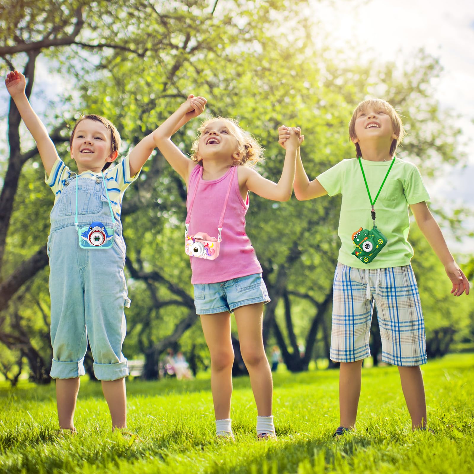 ["【HD Dual Lens & 1080p Video】The kids camera with 20 million pixel HD dual lens, 1080P video resolution, 2.0" display. The kids camera supports video recording, playback, self-timer, time-lapse recording, and digital zoom. Let children restore the world from their perspective with kids cameras.","【32GB SD CARD & MP3】The 32GB SD card included with this kids camera and the card reader can import the music the child likes, and the kids camera can be converted into a portable MP3 player. Our kids camera for girls has a built-in 600mAh battery that works for 3-4 hours after fully charged.","【Fun Picture Frames & Puzzle Games】Kids camera includes 5 classic games, 10 mirror effects, 6 photo filters, and 28 cartoon picture frame functions. Let children use the kids digital camera boys to transform the special effects themselves, become beautiful and fun, awaken the interest of children, and have unlimited childhood fun!","【Cute Silicone Case & Portable Keychain】Kids Camera is an outdoor game for children that is very close to nature. The silicone protective case is durable and safe, not only cute but also prevents the kids camera from breaking. With two very durable keychains, boys and girls can easily hang it around their necks. Inspire children's desire to explore nature and promote their interest in photography.","【Cool Gifts for Girls and Boys】Kids camera is a unique gift for children. Children will be delighted with such gifts at school, for birthdays, New Year, Christmas, Thanksgiving, and other special occasions. Give it to the kids! Let them be "WOW"!"]