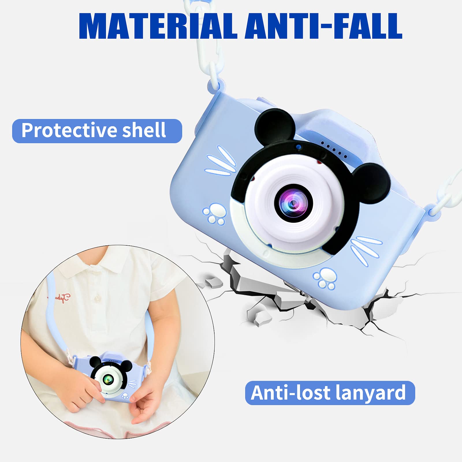 "Safety and shockproof material: Equipped with an eco-friendly, non-toxic soft silicone case that has a cute shape and is safe and comfortable for kids' skin. The shockproof, lightweight, and durable case make it a long-lasting camera for kids.",