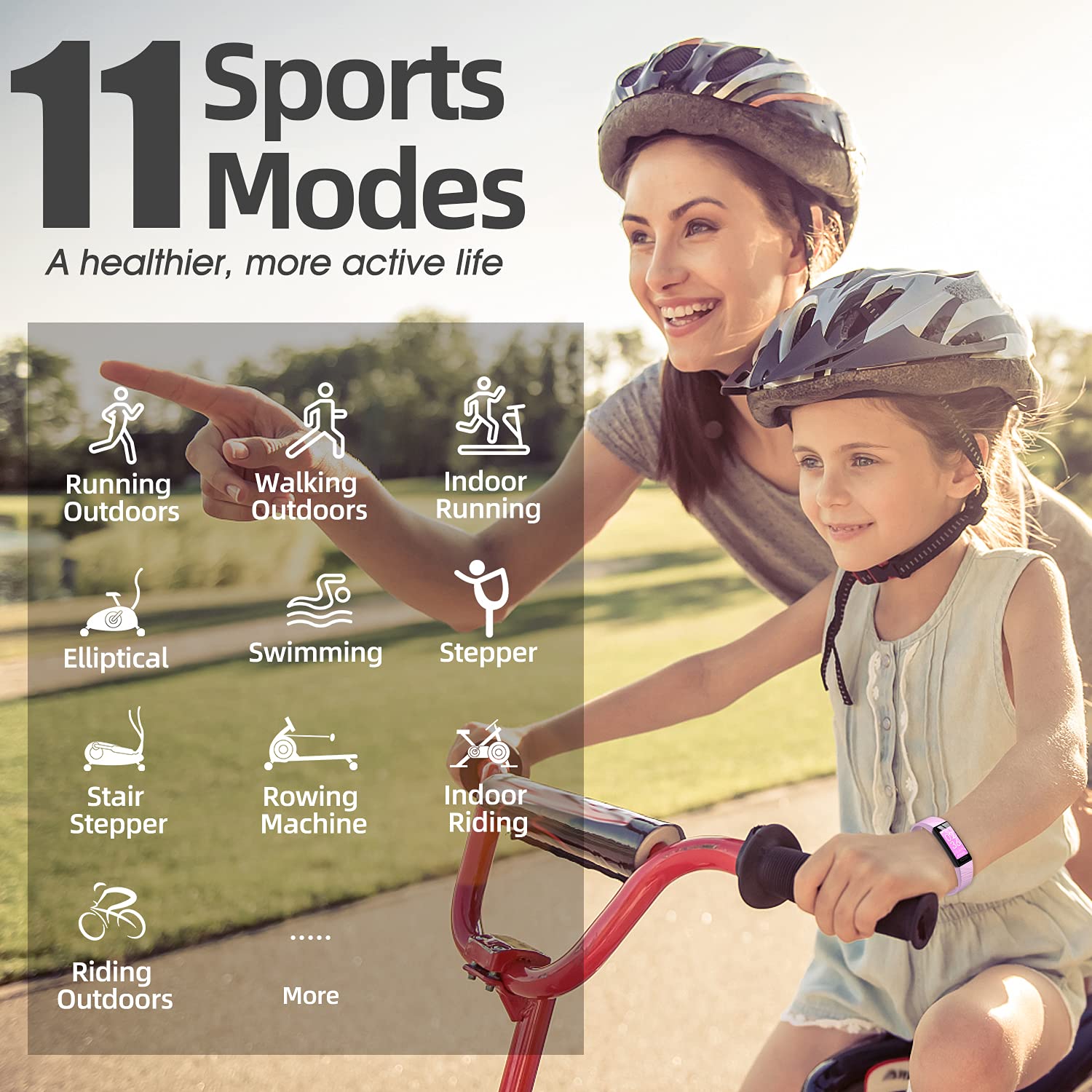 ["Kid-friendly fitness tracker"]This is a fitness tracker specially designed for kids. Comfortable, durable silicone band and secure, adjustable buckle, available in many different beautiful colors. Kids can also choose their favorite 8 different themed interfaces. Adjustable watch bands fit for 5-7.5 inch wrist. Always ready to play.