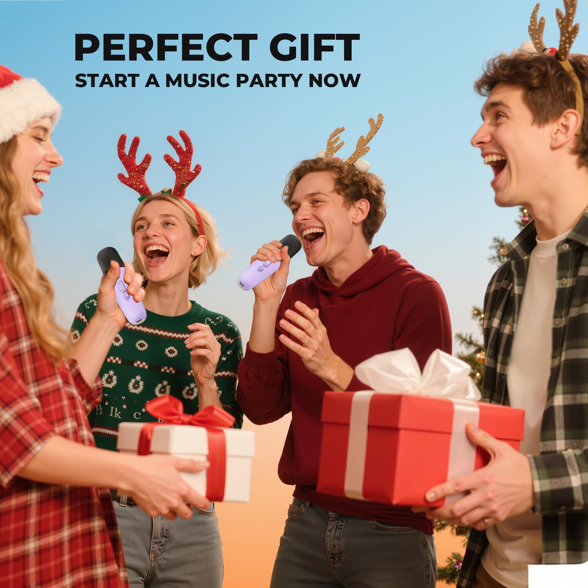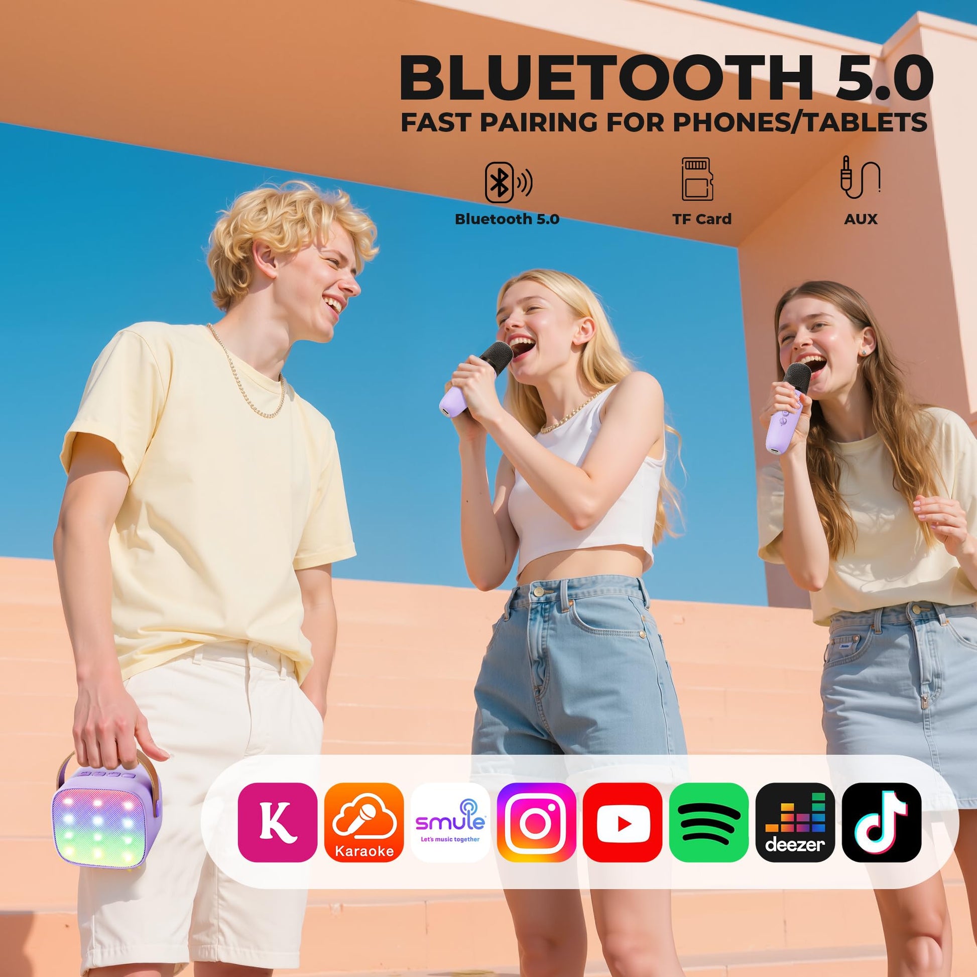 Kids Mini Karaoke Machine with 2 Microphones Bluetooth Speaker with LED Lights and Voice Changer, Gift for Girls 3, 4, 5, 6, 7, 8, 9, 10, 11, 12+ Years (Purple)