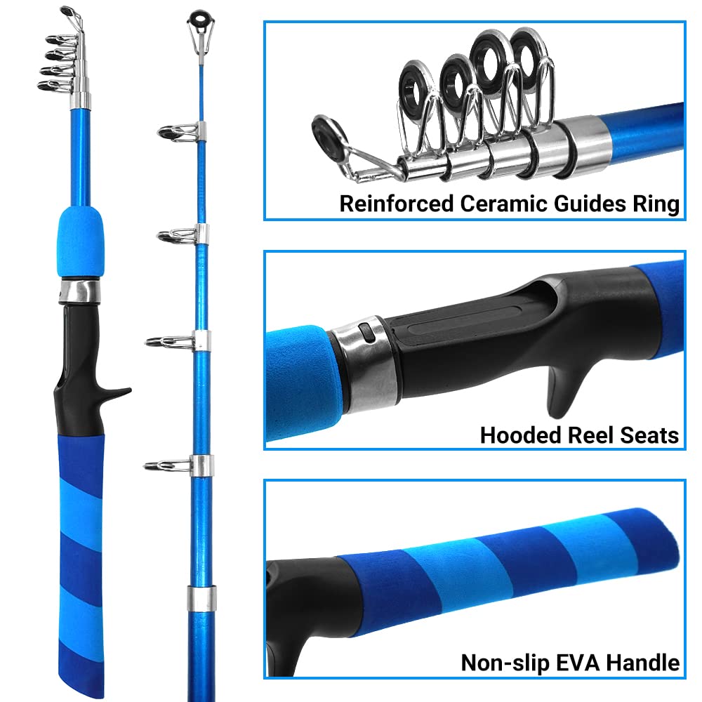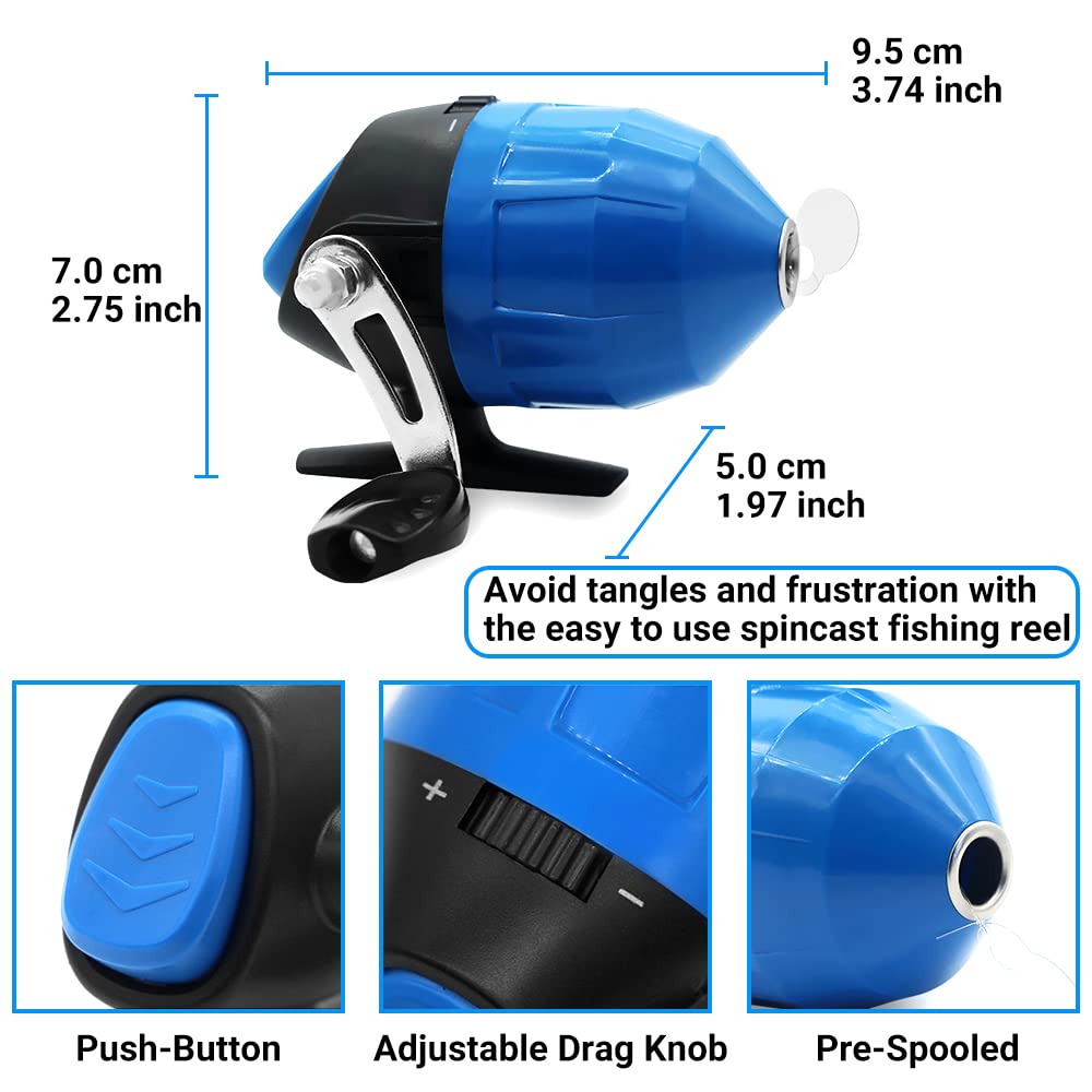 ["Fantastic Fishing Set - This children's fishing set comes with a telescopic fishing rod, a fishing reel, fishing gear, a travel bag, and all the necessary fishing equipment you need to get started.","Perfect size for kids - Specifically designed for small hands, soft and lightweight, easy and safe for kids to assemble and use.","Premium material - The telescopic fishing rod is made of stunning fiberglass, which looks good and is wear-resistant with regular use. The EVA handle feels comfortable in hand. Sturdy hooded reel seat is easy to assemble and disassemble, even kids can do this easily.","Grow with fishing - Fishing means developing patience, discipline, and concentration! Fishing not only improves mental and physical well-being but also helps create fun and happy memories with family.","Surprising gift - Fishing with your child, an ideal gift choice for birthdays and Children's Day. (Due to different production batches, some details may have different colors.)"]