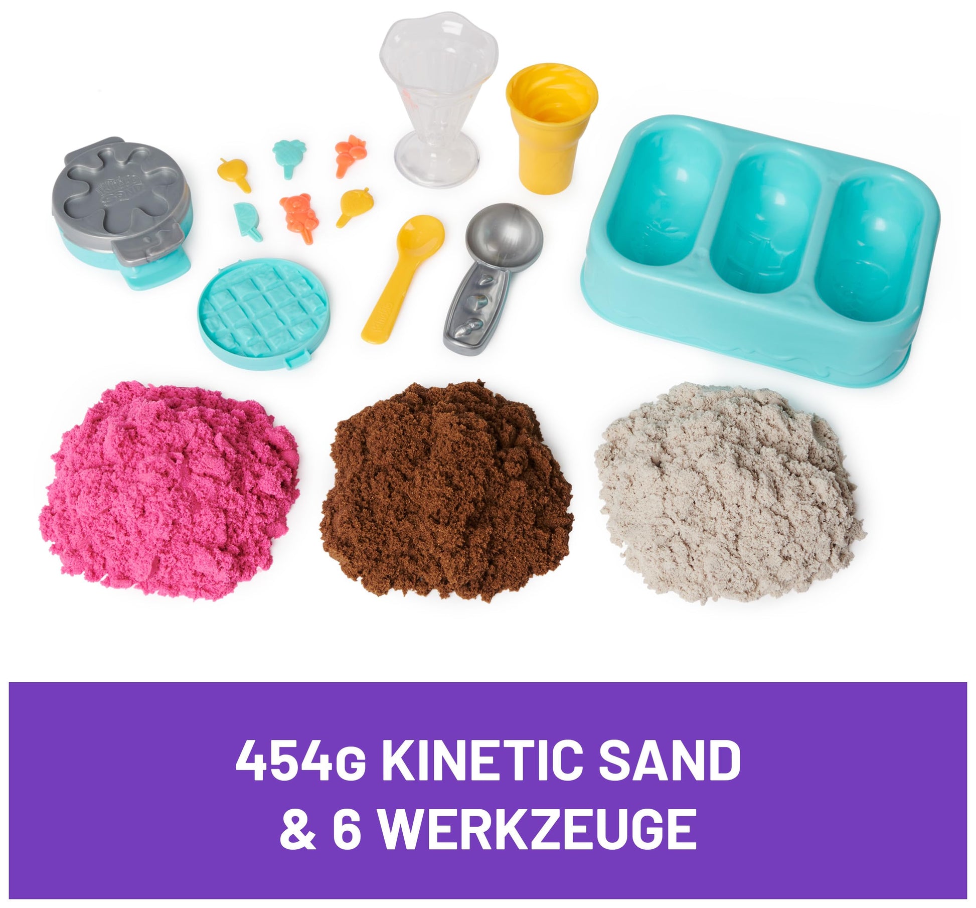 Kinetic Sand Ice Cream Set - with 454g of original magic sand from Sweden and lots of accessories for creative indoor sand play fun, for children aged 3 and up.