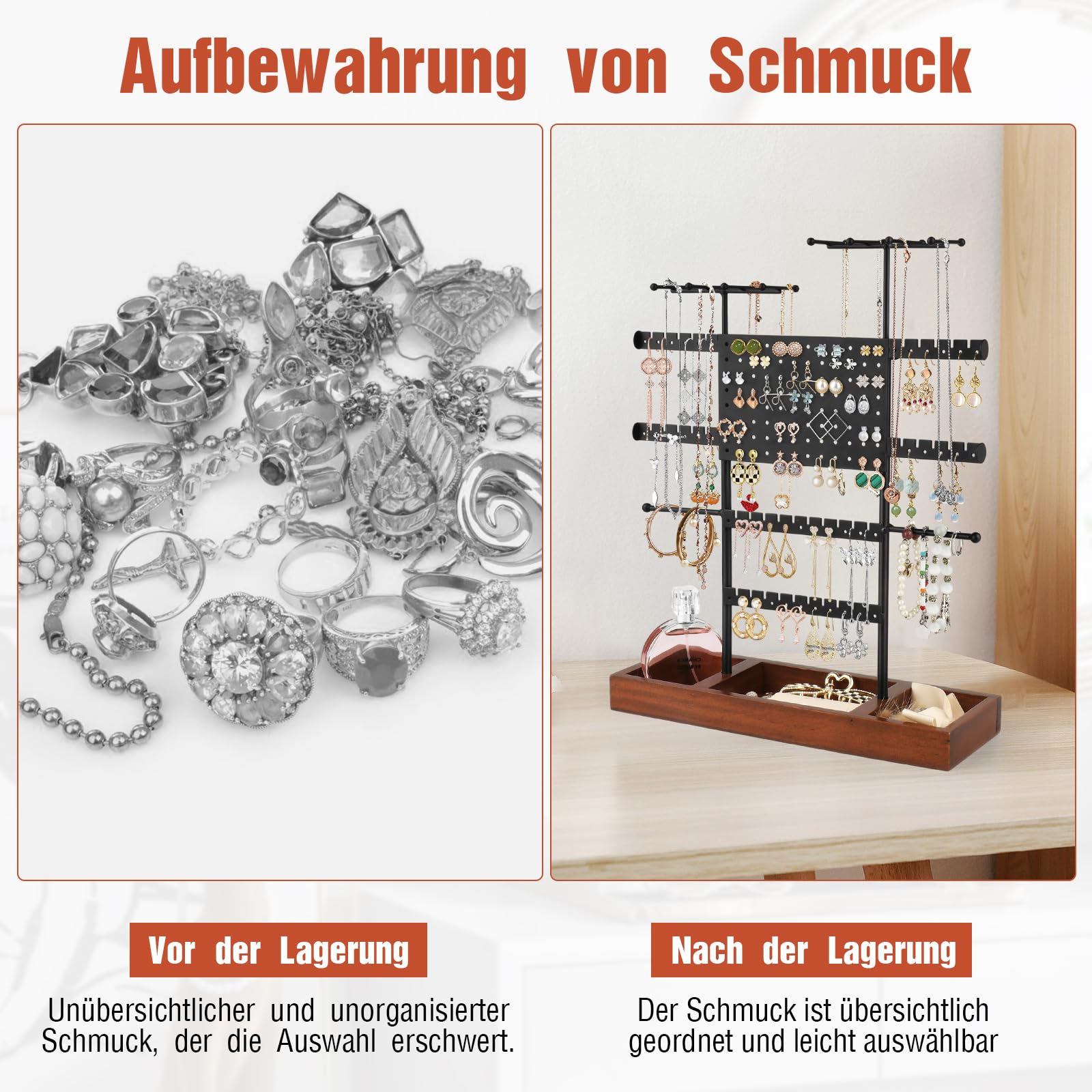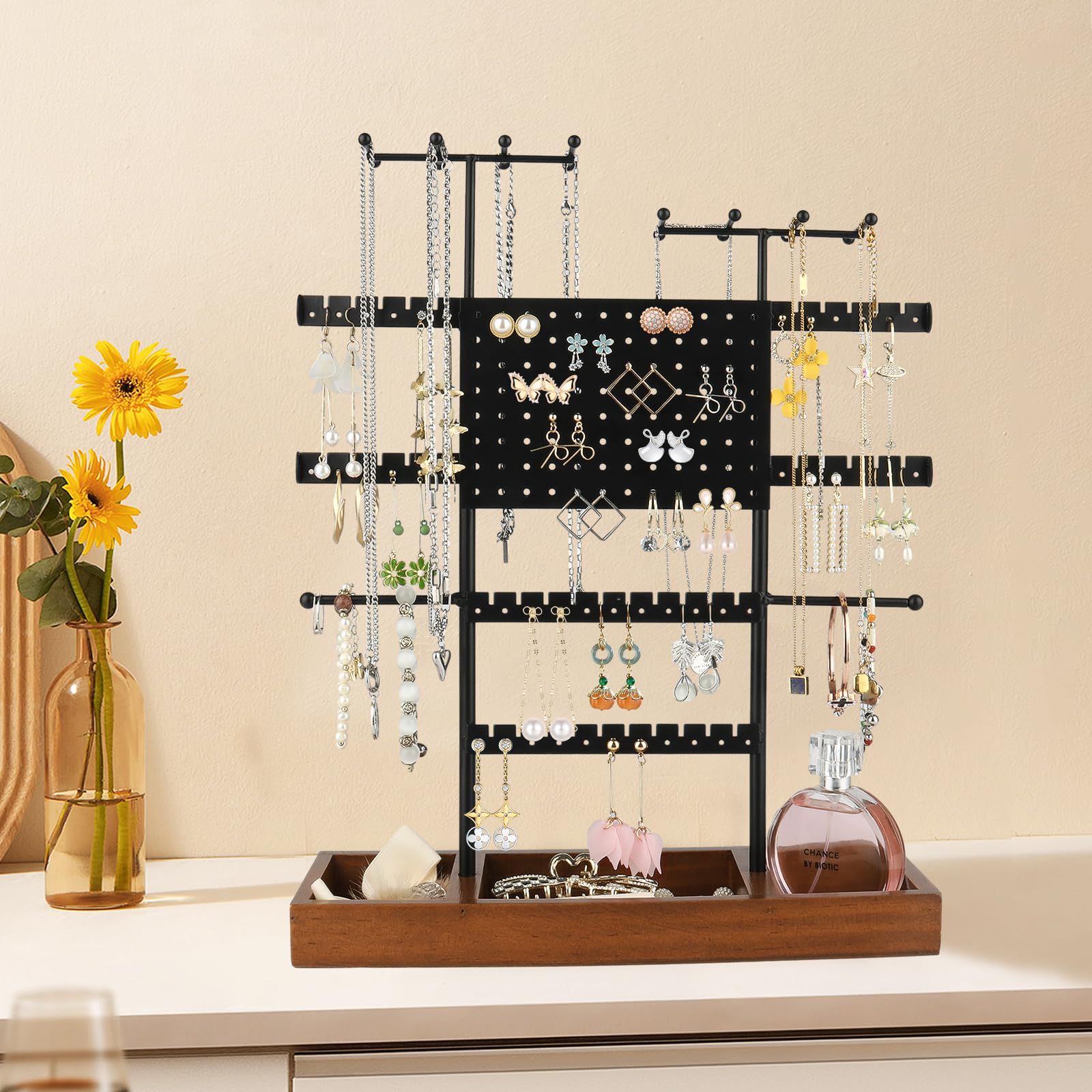 Earrings Jewelry Stand: Our jewelry stand is designed to hold necklaces, earrings, bracelets, and rings on your table to keep it clean and tidy. The systematic display of our jewelry saves us time searching.
