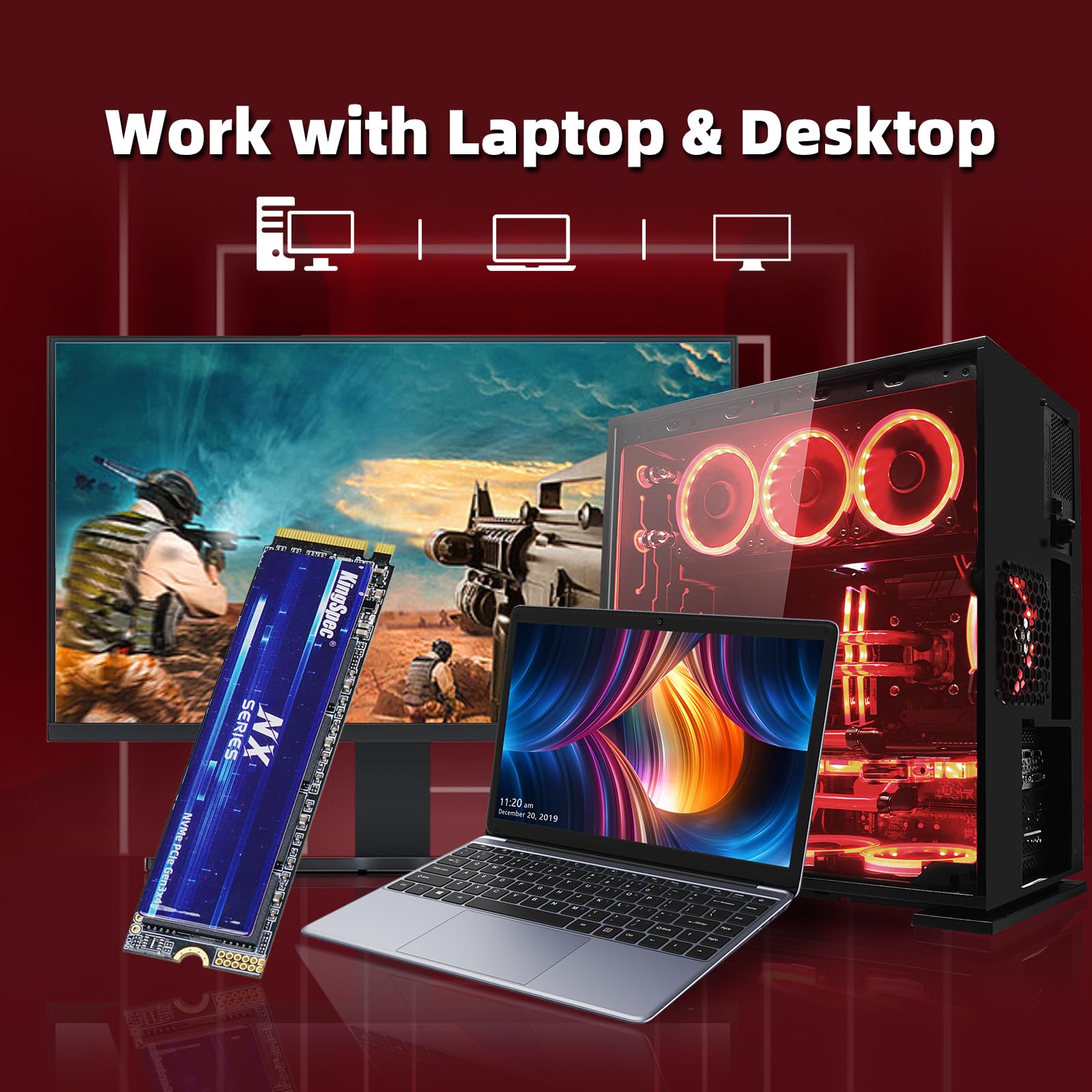 KingSpec NX-2280 512GB SSD NVMe M.2 PCIe 3.0 Gen 3x4 Gaming Solid State Drive, Up to 3500MB/s Read, 3D NAND Flash Internal SSD for Desktop/Laptop