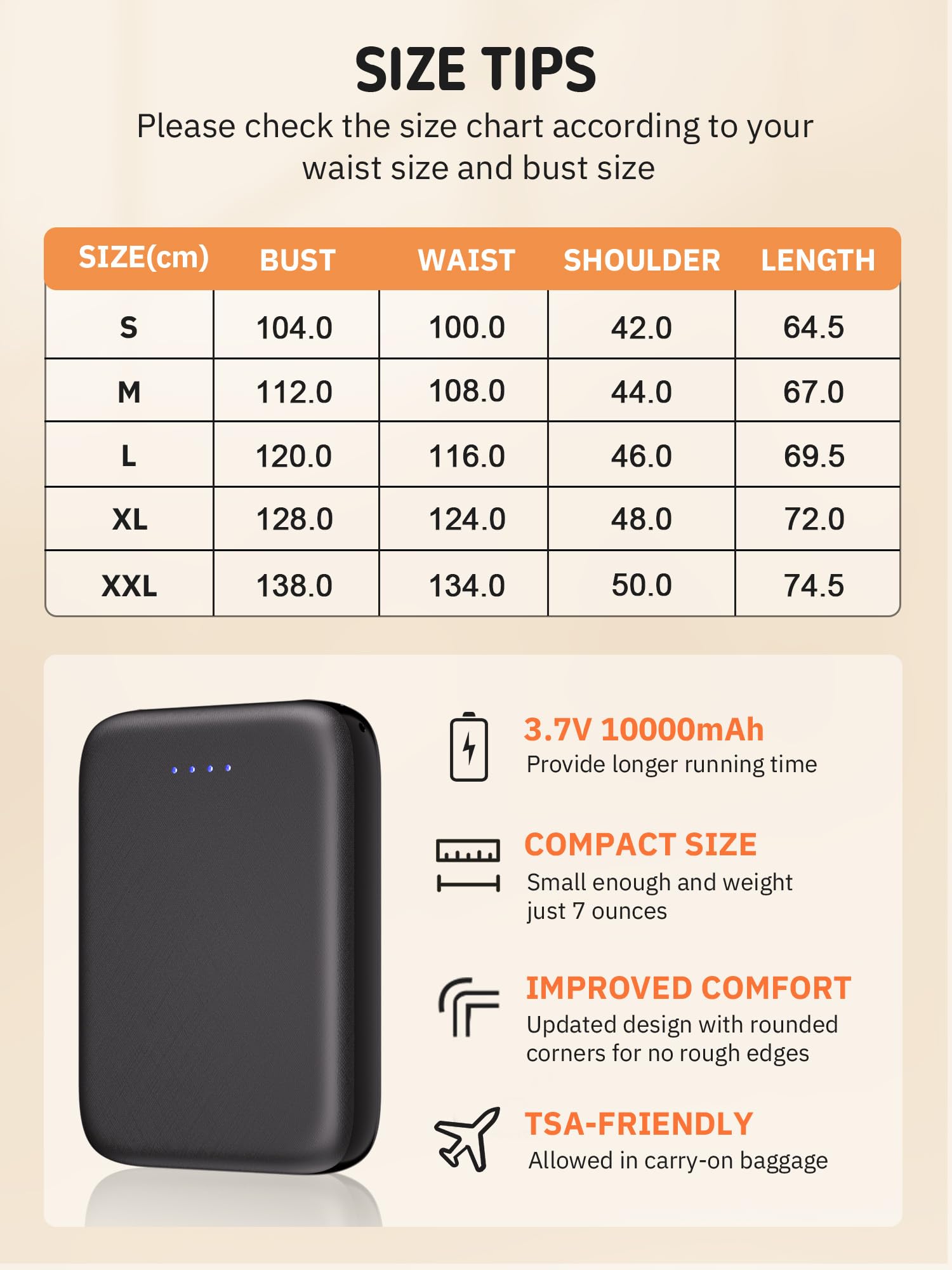 ["[5 Heating Zones] The men's heated vest redesigned for 2024 features 5 carbon fiber heating units (middle back, left/right abdomen, left/right waist). Carbon fiber heats up very quickly and will keep you warm within three minutes.","[High Capacity Powerbank] Heated vest for men with 10000mAh portable universal power bank and 3 heating levels. High = 4 hours = 60 °C (Red Light); Medium = 6 hours = 55 °C (White Light); Low = 8 hours = 50 °C (Blue Light). Three available heating levels can be easily adjusted with the press of a button. Various temperature settings to meet your needs.","[Lightweight] For a perfect fit, the heated jacket is equipped with an adjustable zipper, allowing the heated jacket to expand as needed. The lightweight insulation allows for unrestricted movement while providing optimal warmth. You won't need to wear as much clothing in the winter anymore.","[Ideal for All Occasions] The men's heated vest is perfect for daily use during commutes and starts slowly heating up within seconds of turning it on. It is widely suitable for outdoor skiing, winter fishing, mountain biking, cycling, camping, snowshoeing, hunting, outdoor visits, winter walks, office life, and more.","[Quality Assurance] Kintiwe Unisex Heated Vest comes with a 12-month warranty and friendly customer service. This men's heated vest is made of soft material that feels comfortable and makes a great gift for seniors, family members, loved ones, friends, or yourself."]